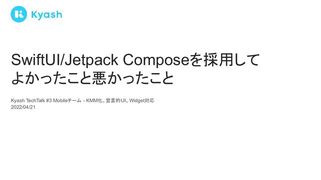 Kyash TechTalk #3 Mobileチーム - KMM化、宣言的UI、Widget対応 2022/04/21 SwiftUI/Jetpack Composeを採用して よかったこと悪かったこと