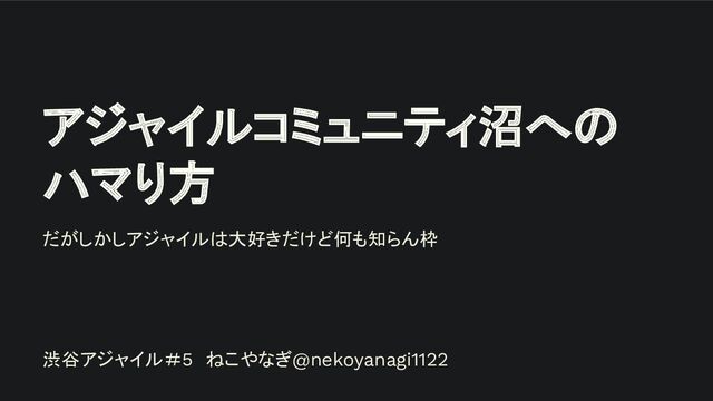 渋谷アジャイル#5 ねこやなぎ@nekoyanagi1122 アジャイルコミュニティ沼への ハマり方 だがしかしアジャイルは大好きだけど何も知らん枠