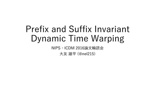 Prefix and Suffix Invariant Dynamic Time Warping NIPS・ICDM 2016論文輪読会 大友