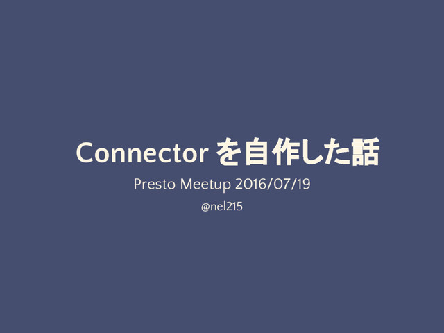 main/src/main/java/com/facebook/presto/sql/planner/optimizations/MetadataQueryOptimizer.java#L142 • どの Metadata をどこから取得するかが重要 • 設定ファイル, API, etc. • Schema 一覧は設定ファイルで Table 一覧は API 経由という形にもできる Connector Metadata Metadata Manager getLayout() presto-main planner.* getTableLayout() Connector TableLayout presto-spi