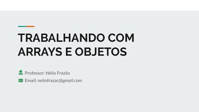 TRABALHANDO COM ARRAYS E OBJETOS Professor: Nélio Frazão Email: