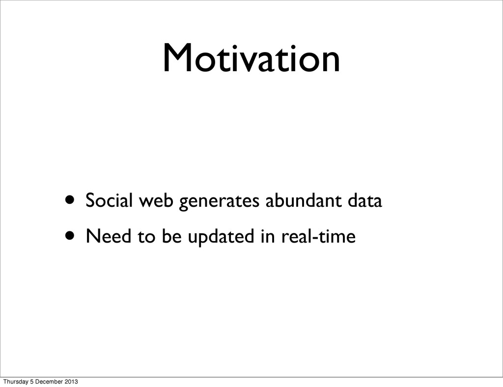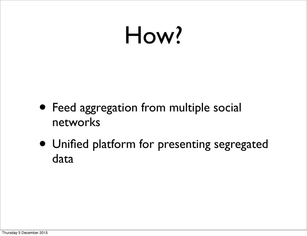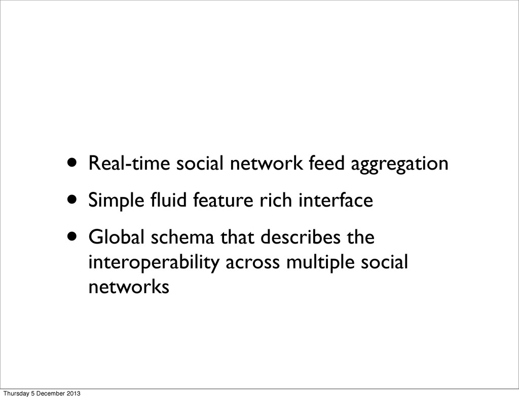 rich interface • Global schema that describes the interoperability across multiple social networks Thursday 5 December 2013