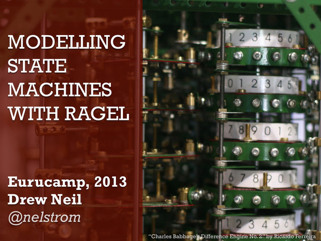 To demonstrate Ragel's capabilities we'll model Vim, which is a Finite State Machine. We'll do so by parsing a stream of Vim keystrokes, using Ragel state machines to manage the transitions between Vim's modes. We'll see how to generate state chart visualisations with Ragel, and how these can be used to debug our state machines. The resulting program will enable us to analyse and visualise the interactions of a Vim user.