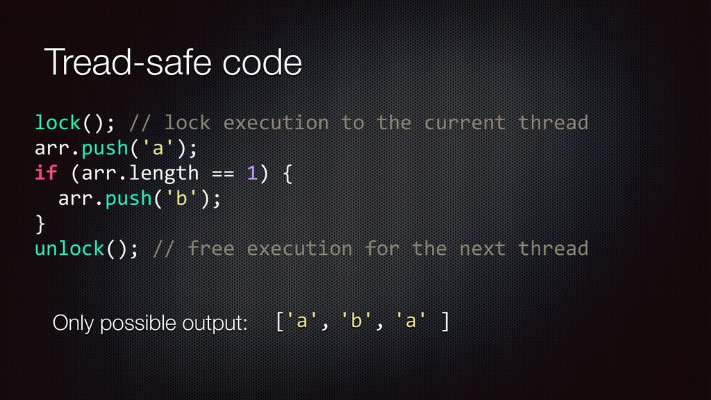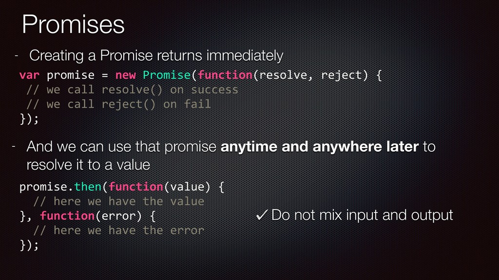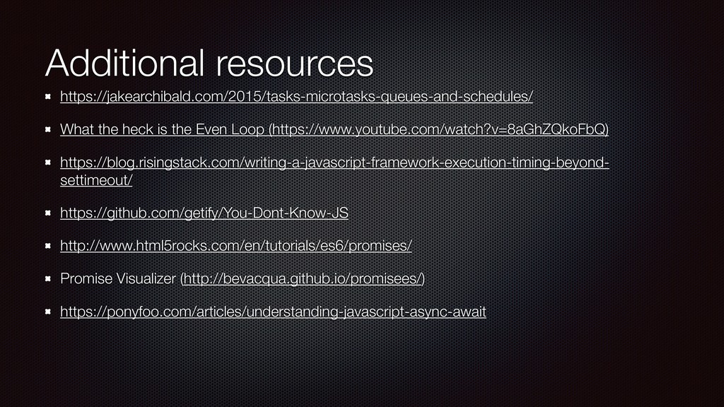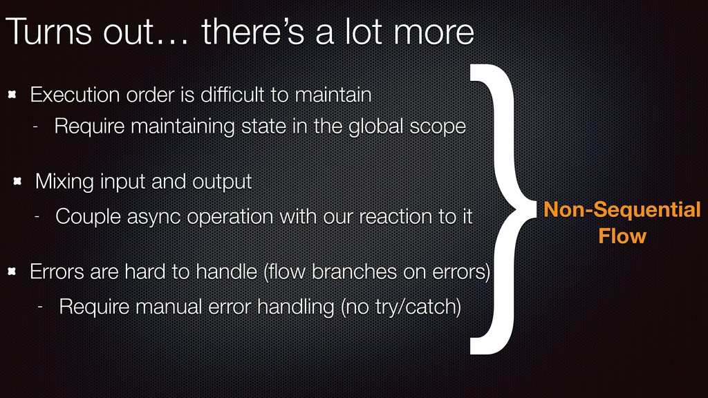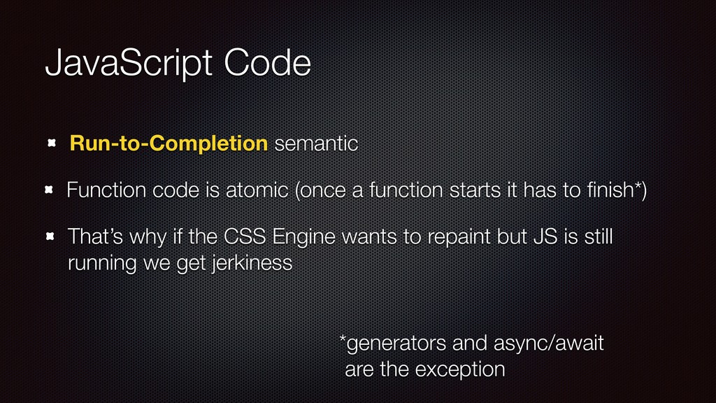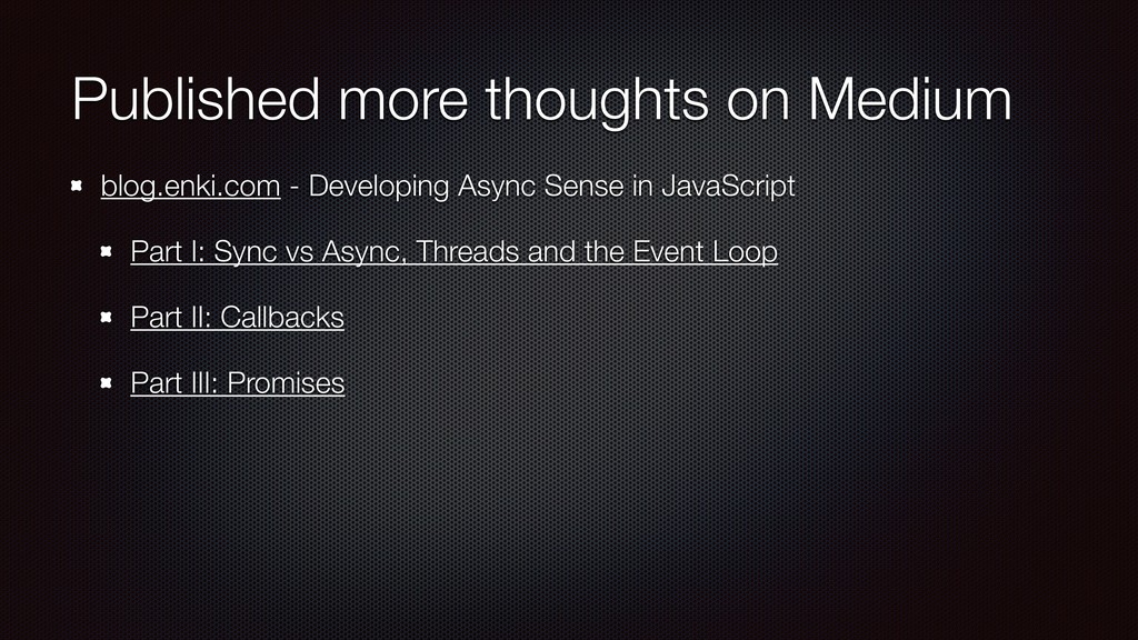 The goal is to show how we can use these patterns to write cleaner and more reliable (concurrent) code and demystify concepts such as the Event Queue, Single-threaded, Run to Completion and Non-Blocking.