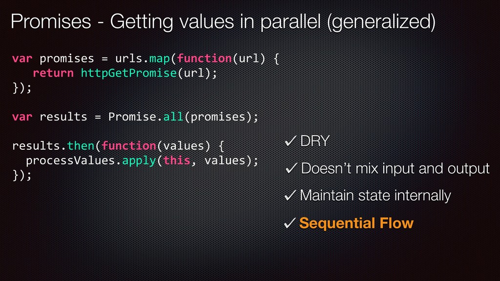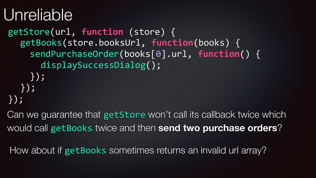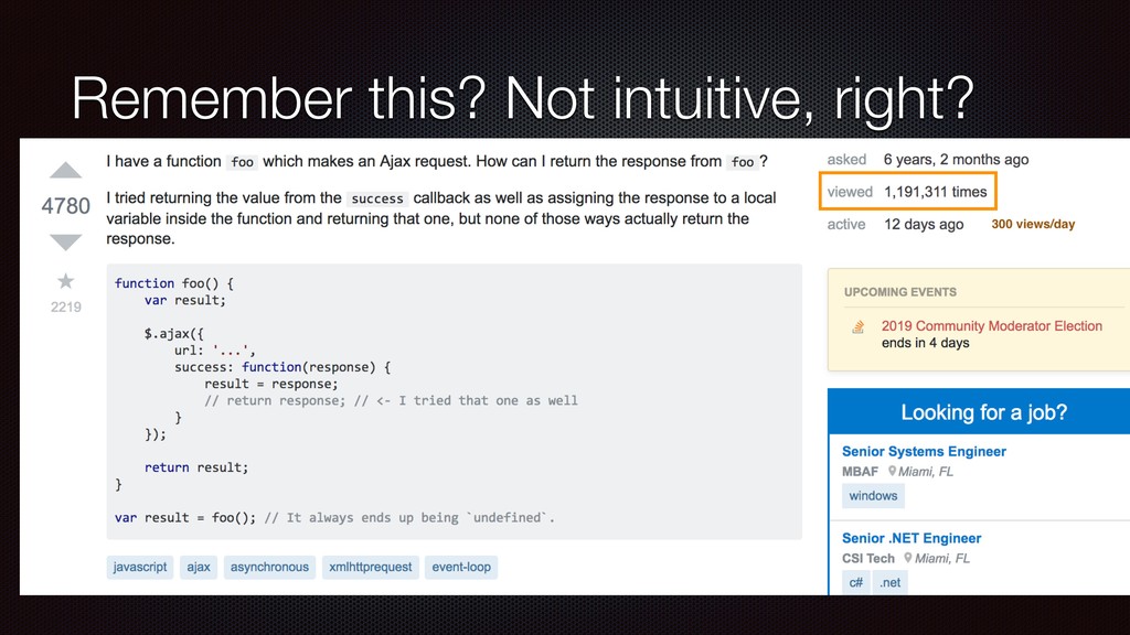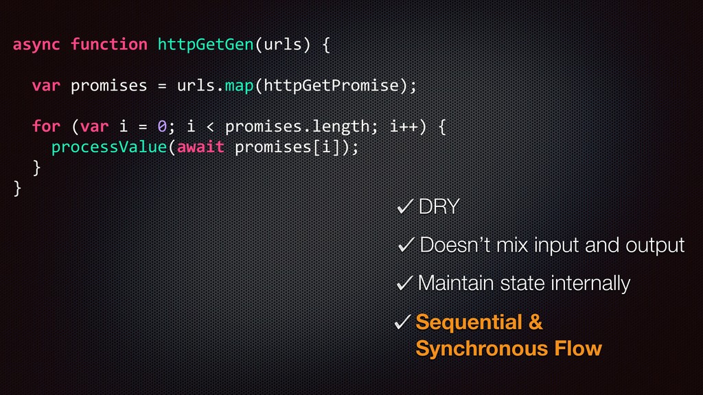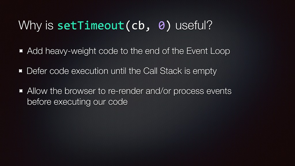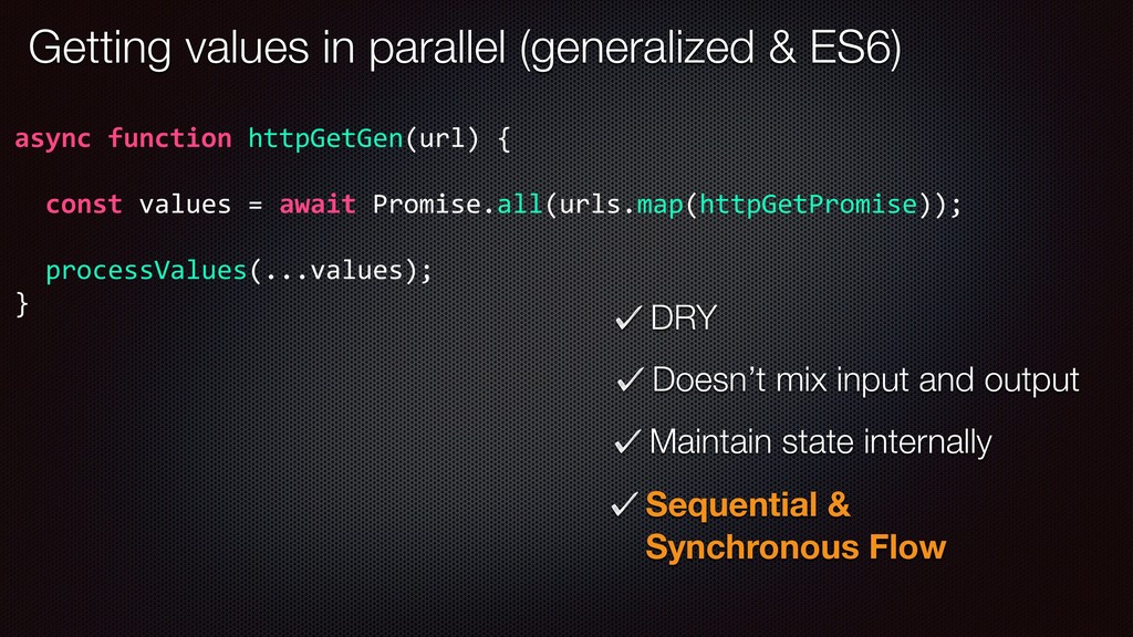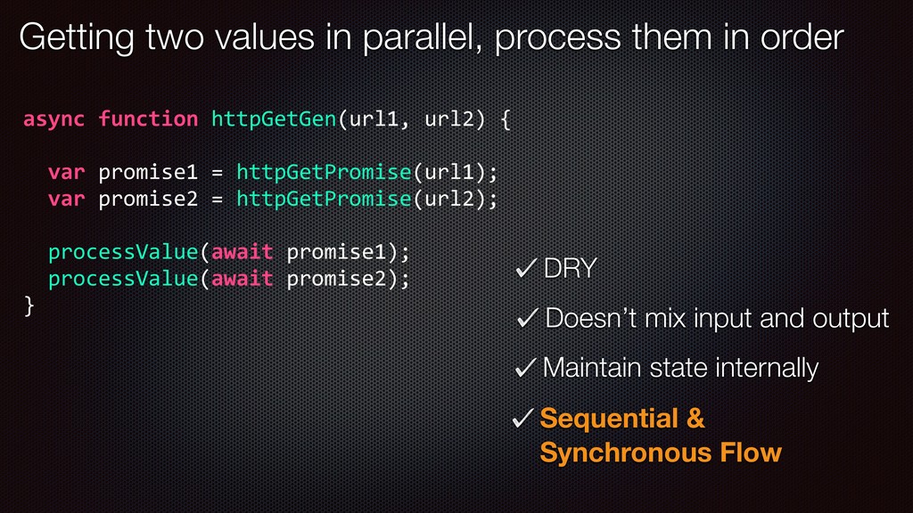 The goal is to show how we can use these patterns to write cleaner and more reliable (concurrent) code and demystify concepts such as the Event Queue, Single-threaded, Run to Completion and Non-Blocking.