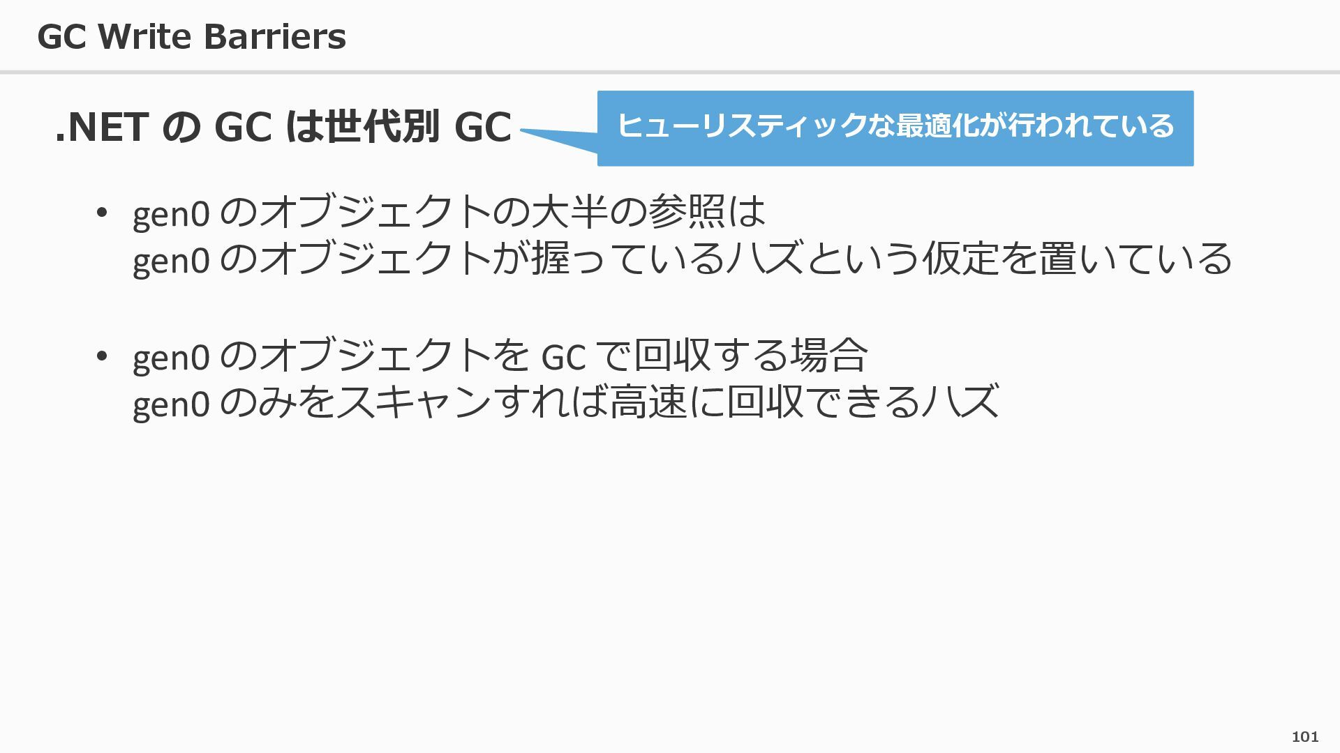 97. Collections 170 MoveNext を再実装した結果 https://speakerdeck.com/nenonaninu/dot-net-8-deji-ding-deyou-xiao-ninatuta-dynamic-pgo-nituite?slide=19 しかしそれでも要素数が増えると Zero allocation ではなくなってしまう なぜか?