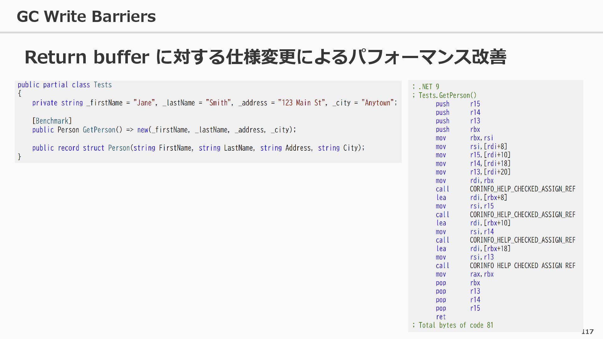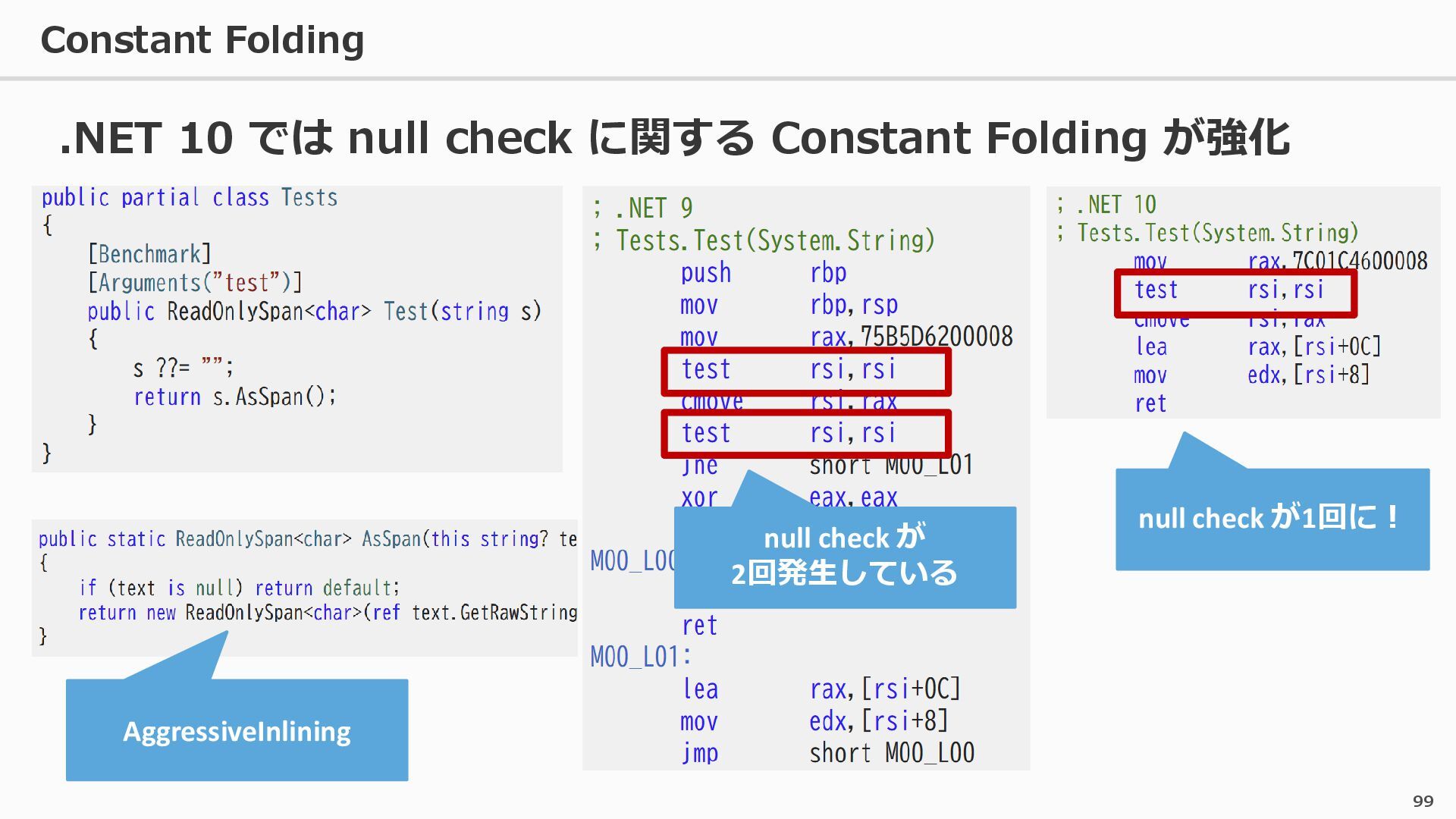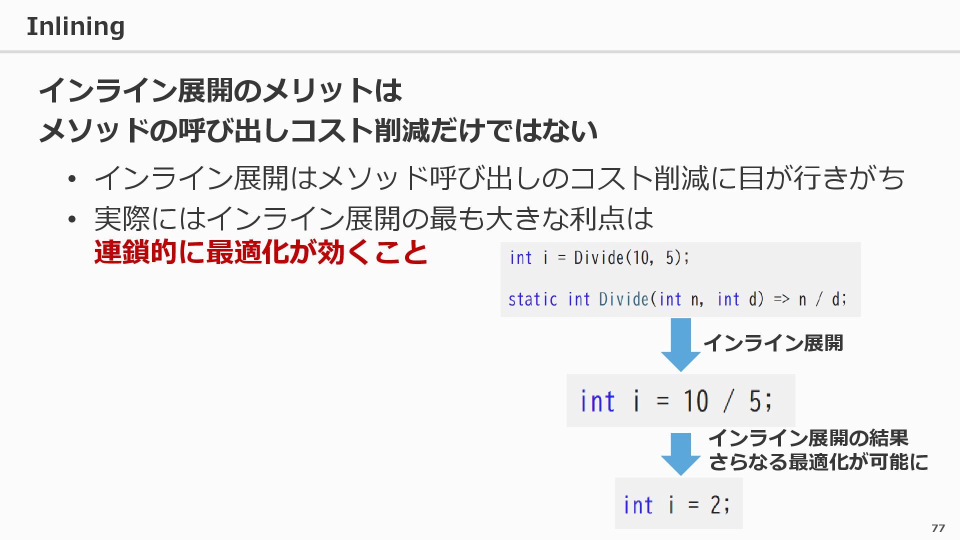 44. Inlining 82 .NET 10 からは try/finally を含むメソッドでもインライン展開 .NET 9 では