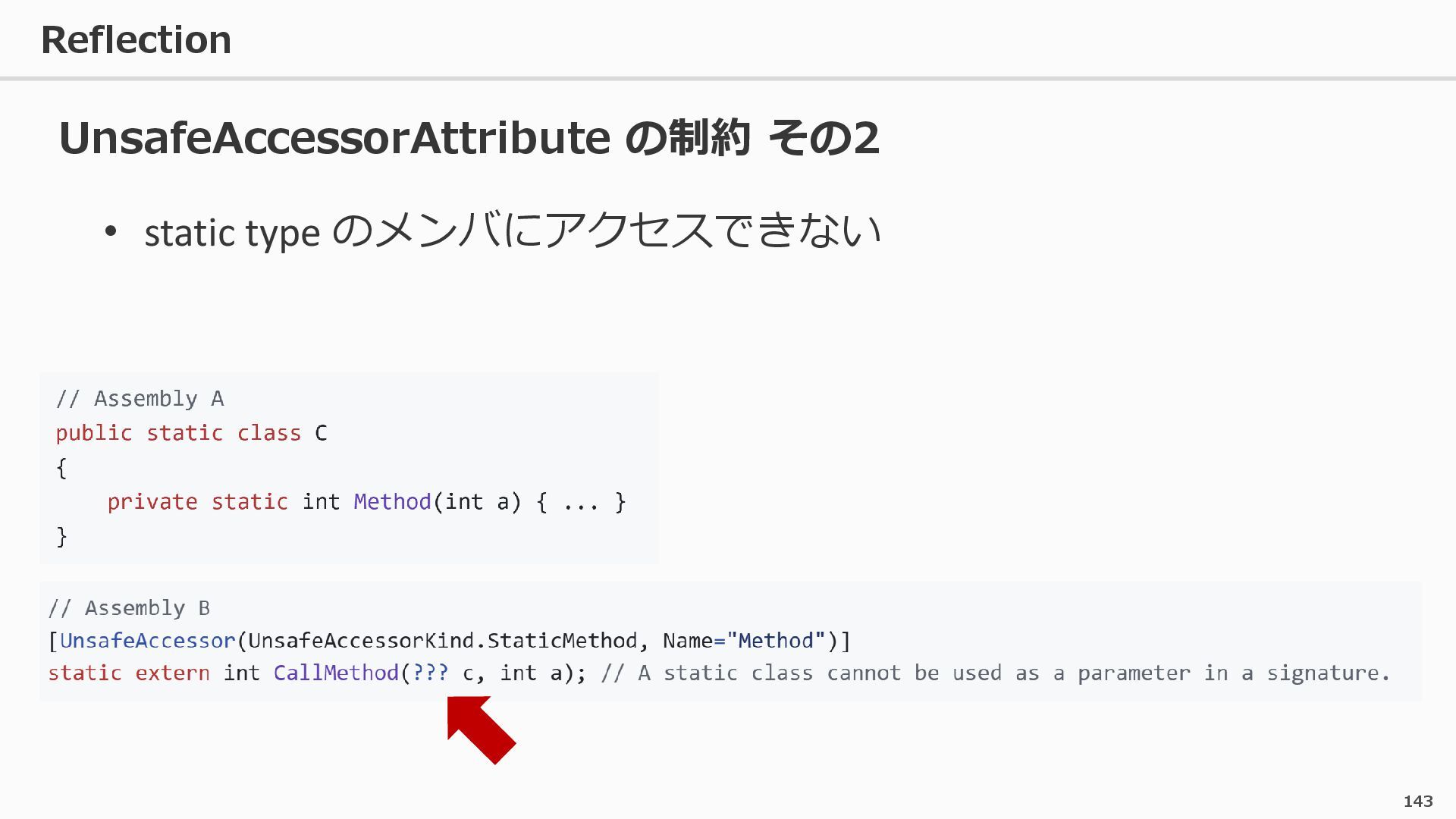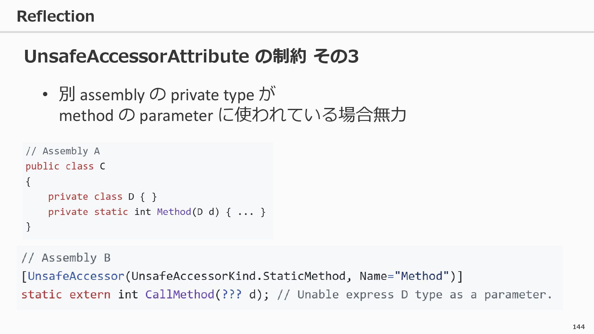84. Reflection 144 UnsafeAccessorAttribute の制約 その3 • 別 assembly の private