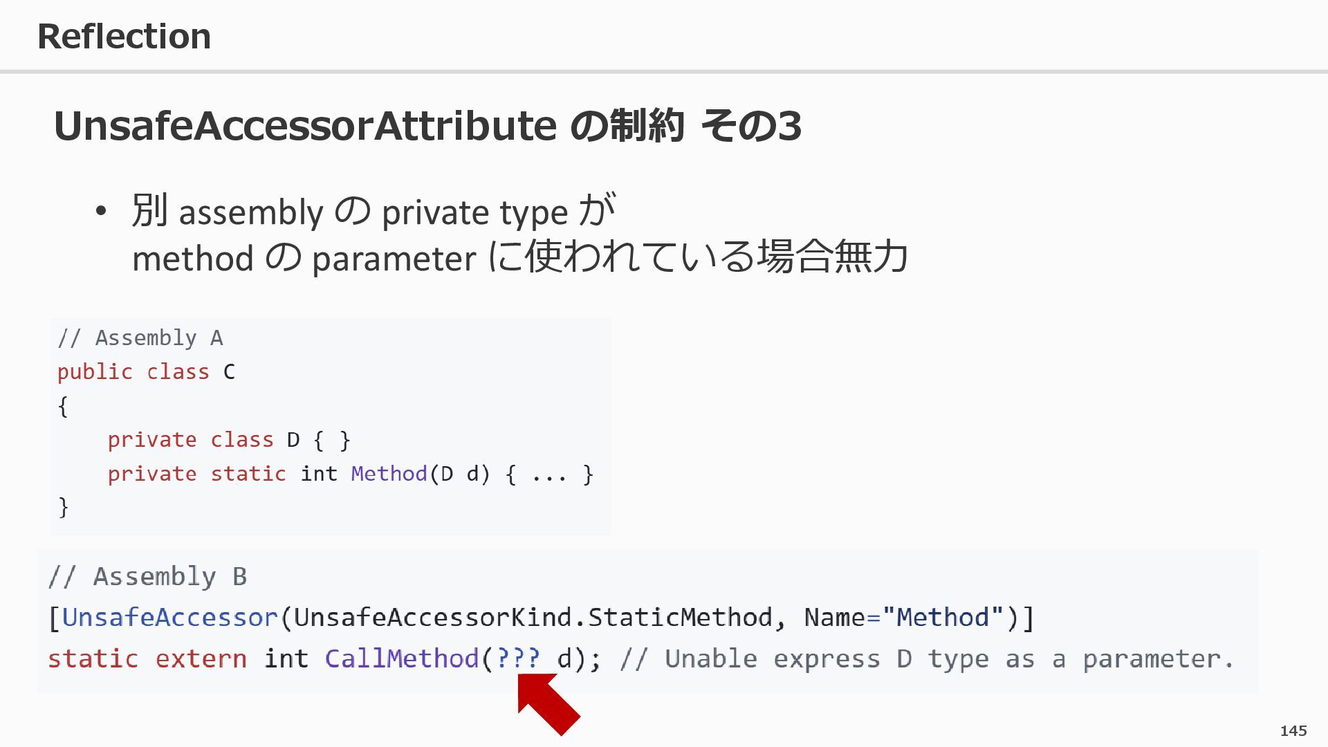 85. Reflection 145 UnsafeAccessorAttribute の制約 その3 • 別 assembly の private