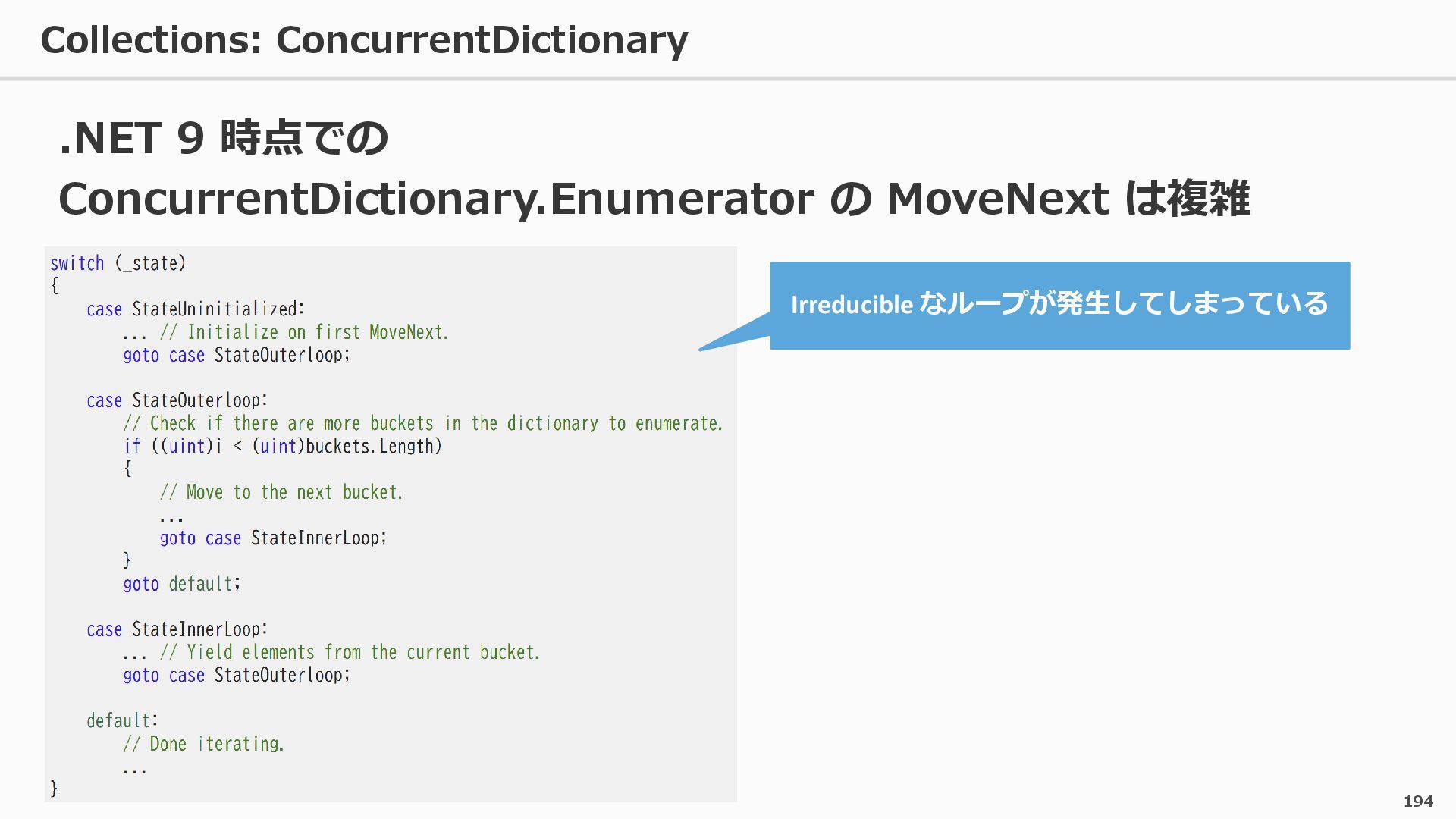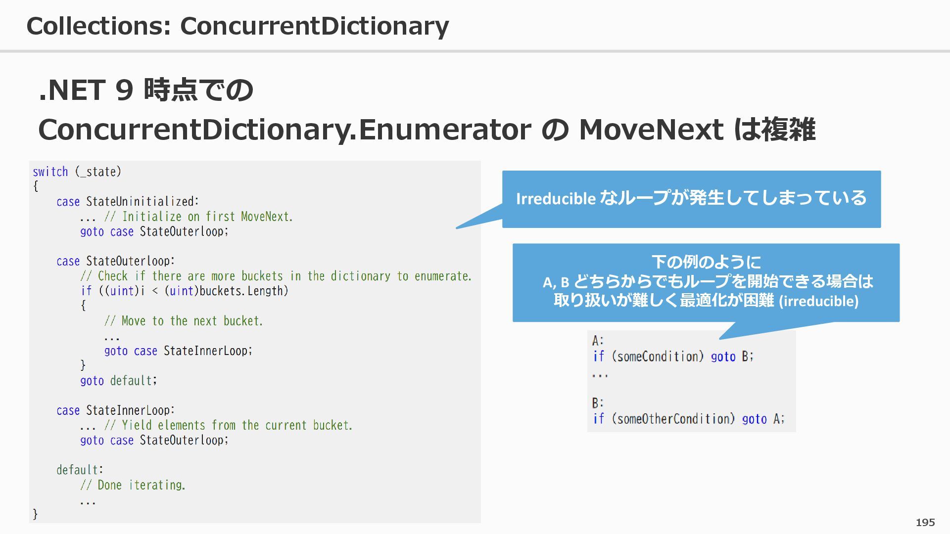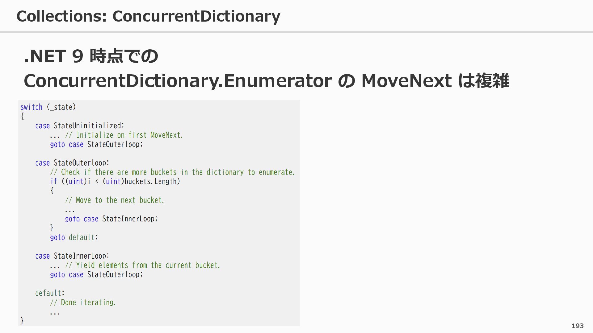 114. Collections: ConcurrentDictionary 196 .NET 9 時点での ConcurrentDictionary.Enumerator の MoveNext は複雑