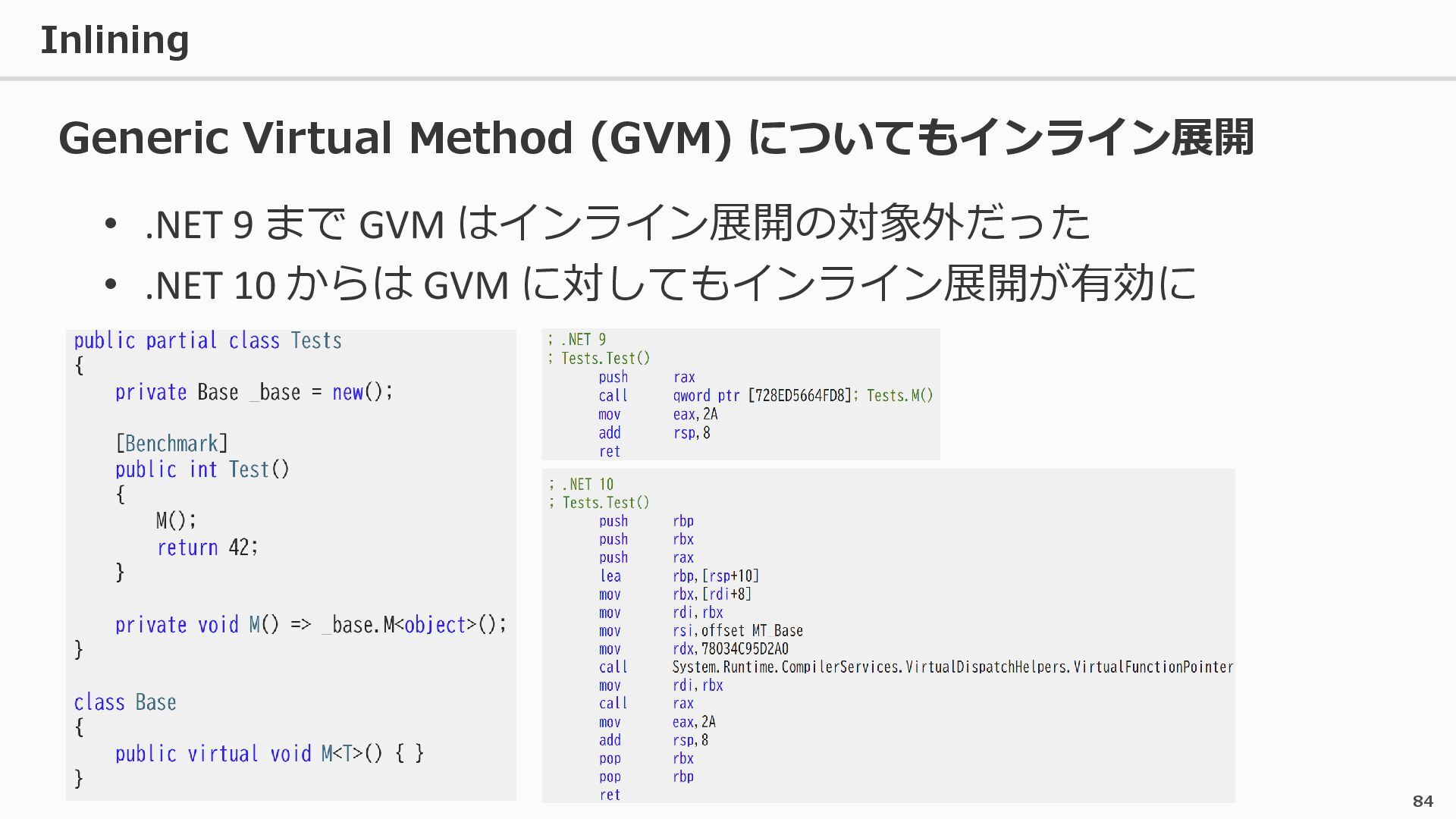 まで GVM はインライン展開の対象外だった • .NET 10 からは GVM に対してもインライン展開が有効に