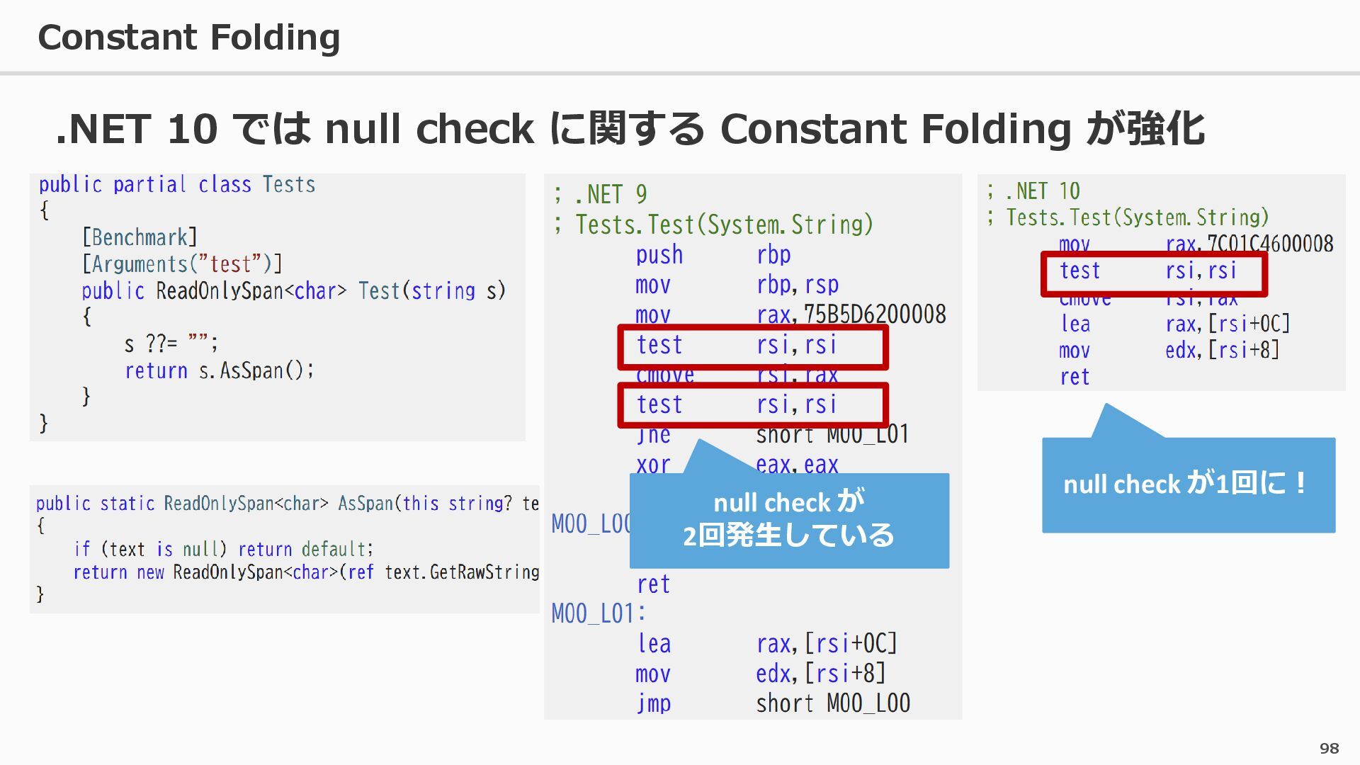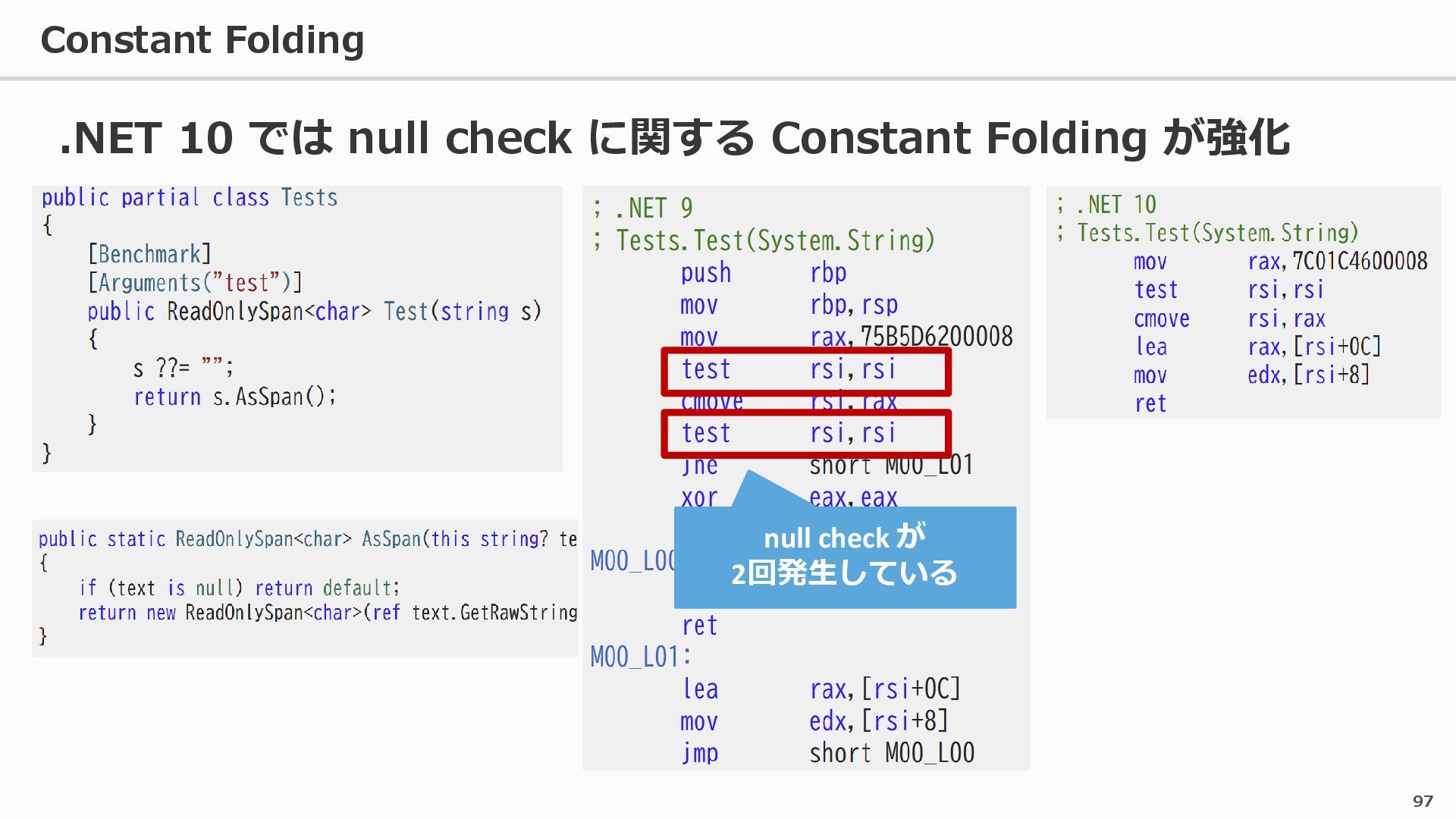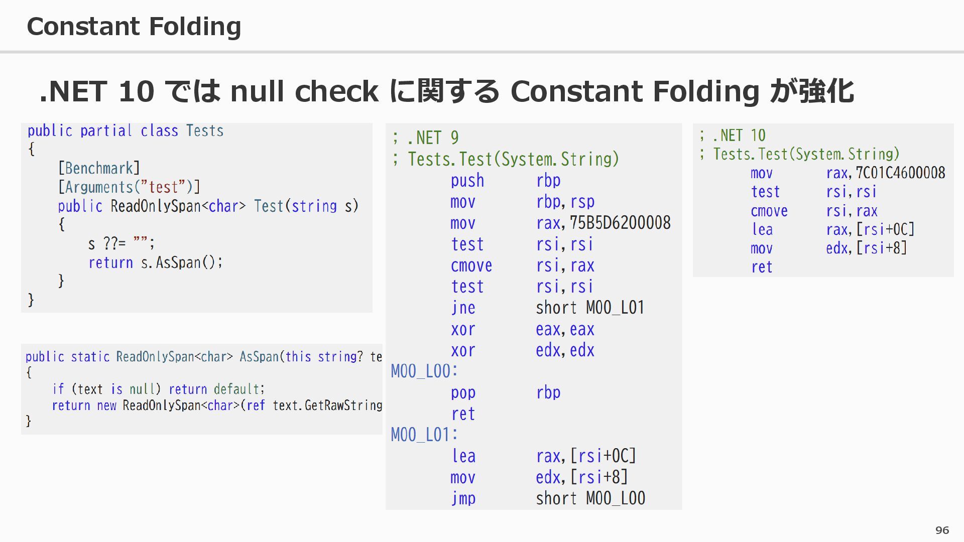 index が配列の長さ未満の場合 これは範囲チェックの分岐が吹き飛ぶので 分岐が1回で済む .NET 10 .NET 9