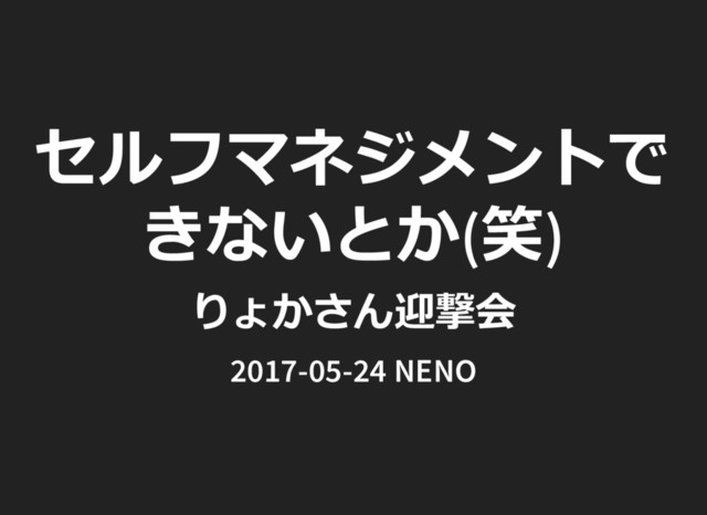 セルフマネジメントで きないとか(笑) りょかさん迎撃会 2017-05-24 NENO