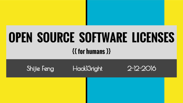 Inspired by the Python requests library and its "HTTP for humans" tagline, I present to you: "Open Source Software Licenses for humans." I will discuss the core values embodied in the idea of "open source," the origins and the impact of the Free Software Movement, and why you should not use "free software" and "open source" interchangeably in front of Richard Stallman. I will introduce you to the three categories of open source software licenses, focusing on the Permissive and the Strongly Protective (Copyleft) types. I will show you some license notices, but fear not -- I will translate them to a human language that everyone can understand.