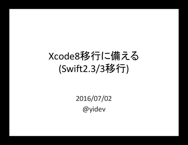 Xcode8移行に備える (Swift2.3/3移行) 2016/07/02 @yidev