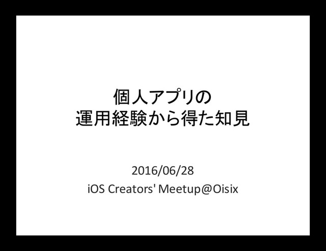 個人アプリの 運用経験から得た知見 2016/06/28 iOS Creators' Meetup@Oisix