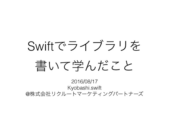 SwiftͰϥΠϒϥϦΛ ॻֶ͍ͯΜͩ͜ͱ 2016/08/17 Kyobashi.swift @גࣜձࣾϦΫϧʔτϚʔέςΟϯάύʔτφʔζ