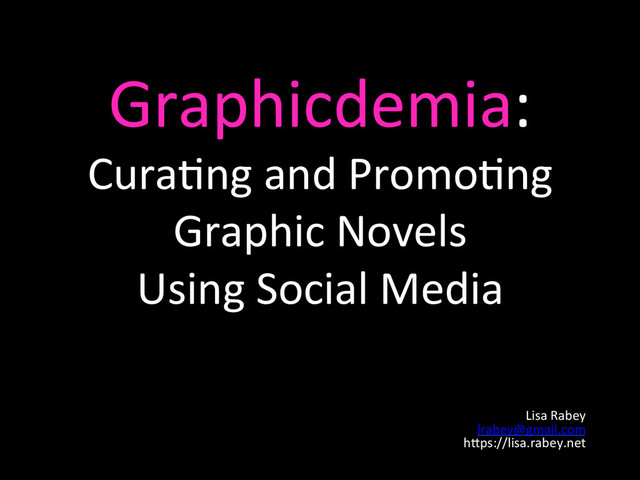 • Collec/ng, teaching, circula/ng, and loving graphic novels and comics in academia. • More specifically, a resource for collec/ng, promo/ng, and circula/ng graphic novels at non-‐research ins/tu/ons, special libraries, archives, and community colleges.