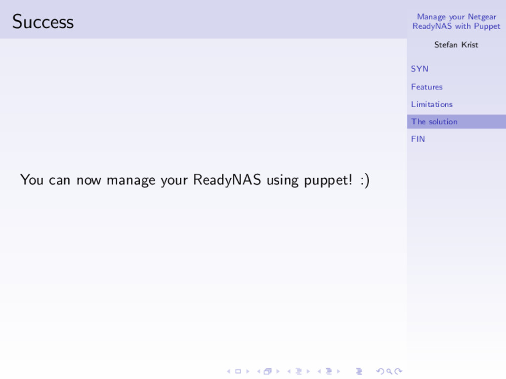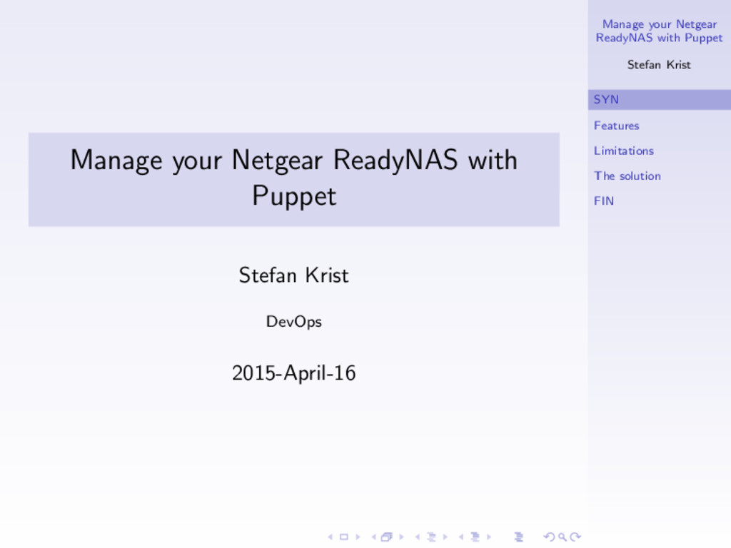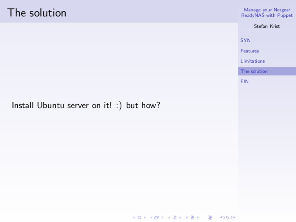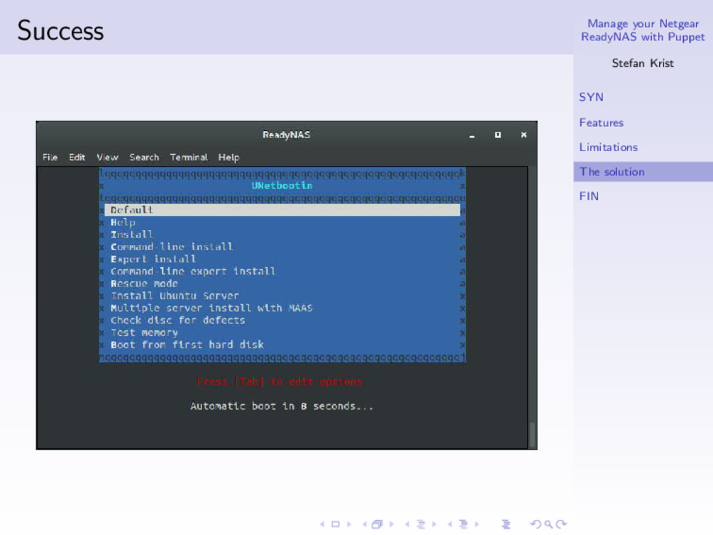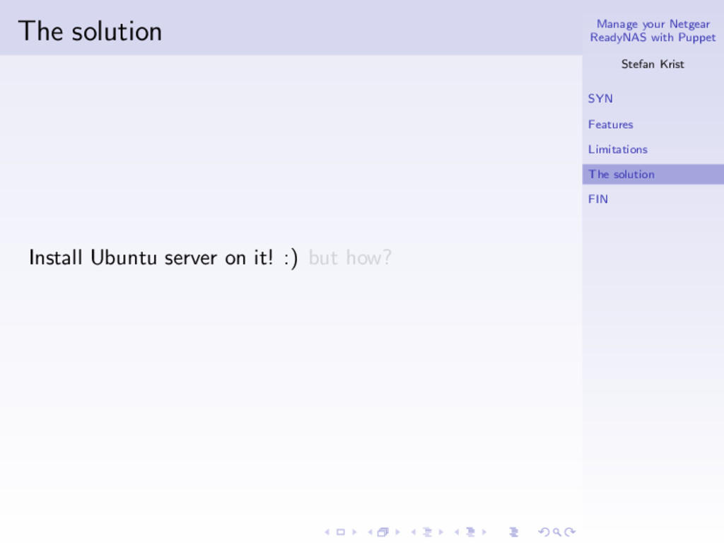 This talk describes how I installed Ubuntu server 14.04 on a Netgear ReadyNAS Duo v2. The title is deliberately misleading to give it a tiny "DevOps" spin.