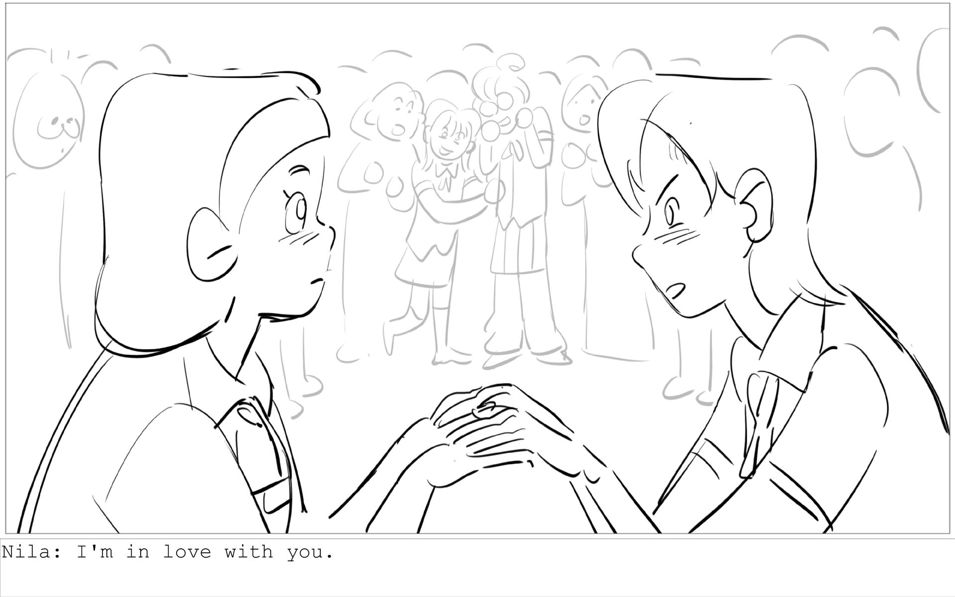 Nila gets the courage to confess to her crush, Beth, after a stern talking-to from her alternate selves.