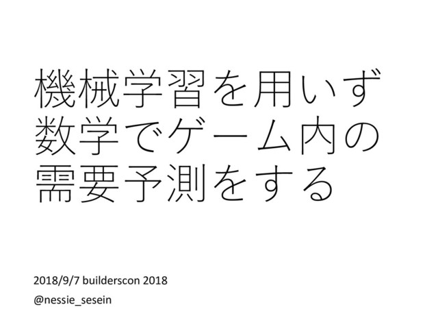 機械学習を用いず 数学でゲーム内の 需要予測をする 2018/9/7 builderscon 2018 @nessie_sesein