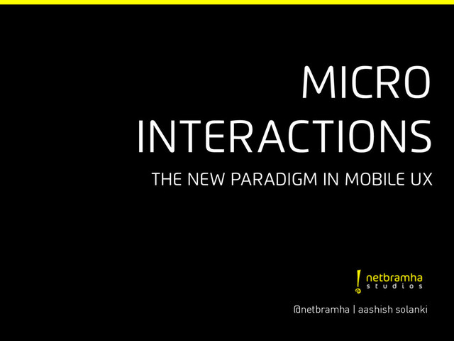 This was the talk I gave the BigMobility conference organised by NextBigWhat. The talk delves into the basics of micro interactions and how mobile developers/entrepreneurs can leverage this for their mobile products.
