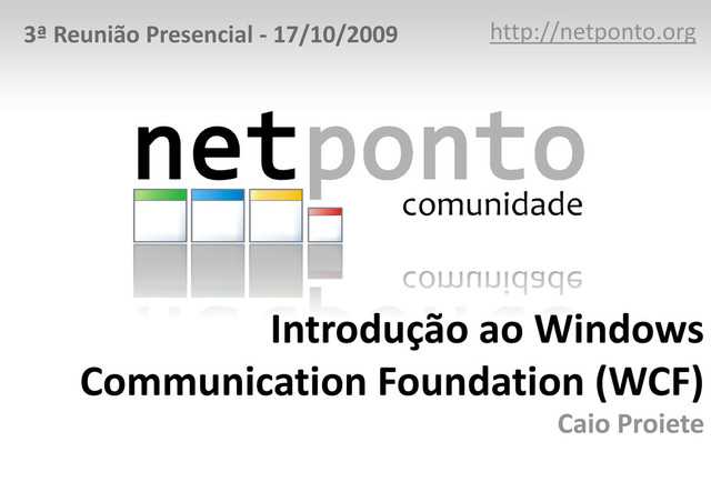 Apresentação sobre Windows Communication Foundation (WCF) com diversas demonstrações práticas de utilização, na terceira reunião presencial da comunidade NetPonto, por C. Augusto Proiete.