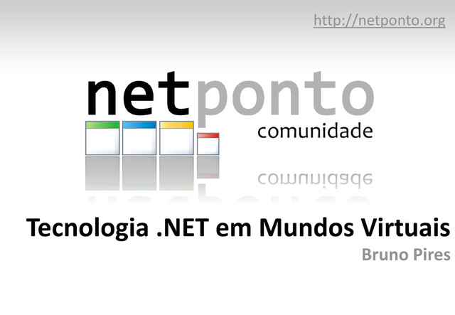 Apresentação de sobre Mundos Virtuais como Second Life e Open Simulator e a plataforma Microsoft .NET na primeira reunião presencial da comunidade NetPonto, por Bruno Pires.