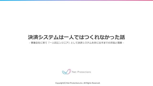 Copyright(C) Net Protections,Inc. All Rights Reserved. 決済システムは⼀⼈ではつくれなかった話 - 事業会社に来て「⼀⼈⽬エンジニア」として決済システムを世に出すまでの苦悩と葛藤 -