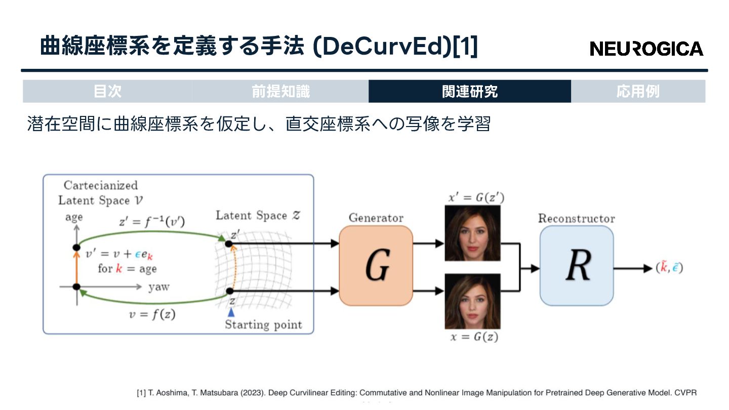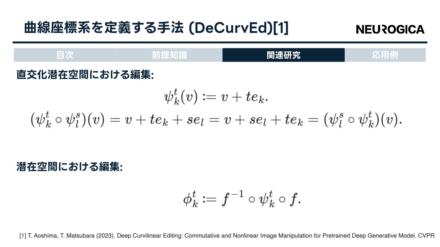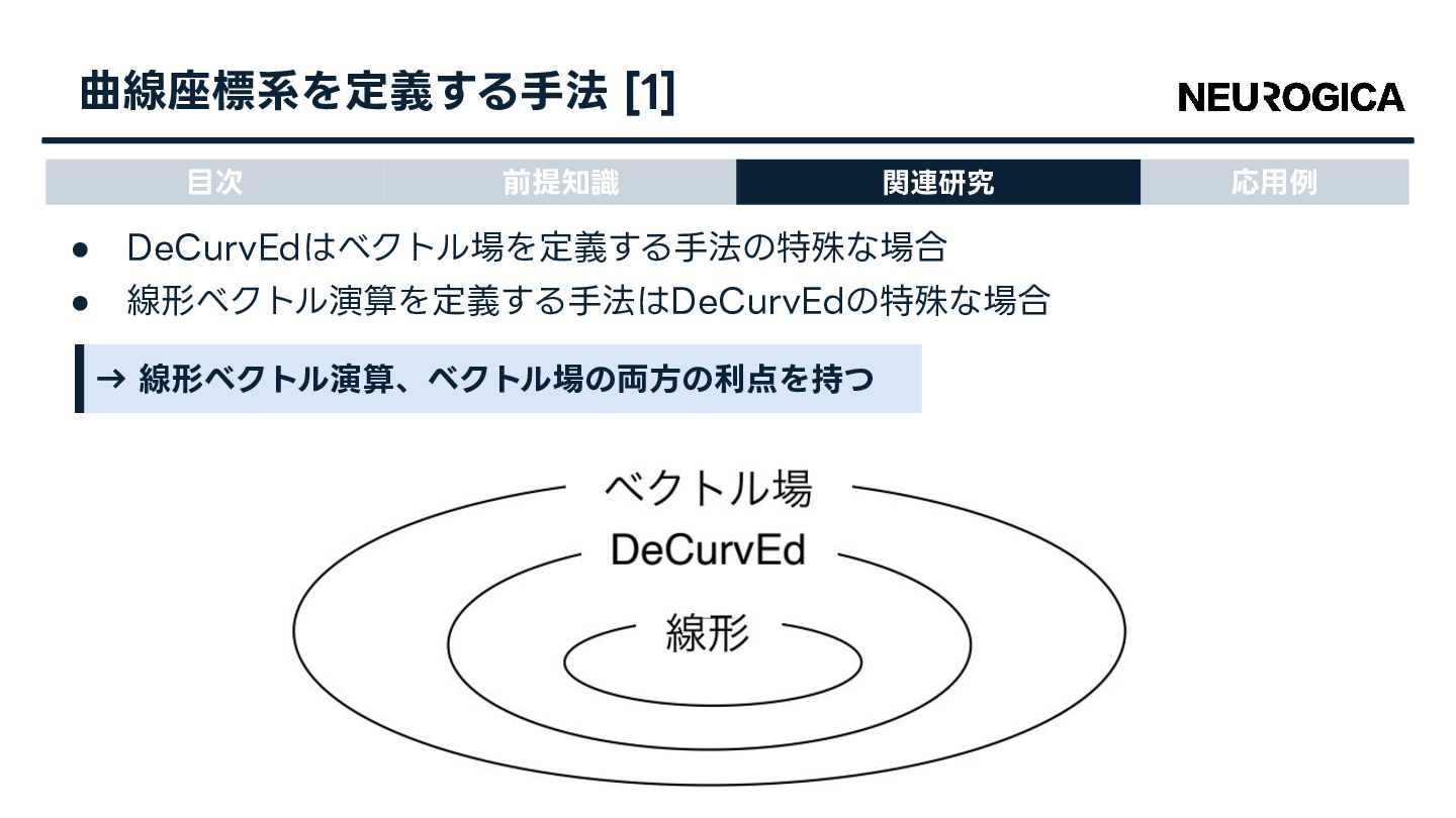 曲線座標系を定義する⼿法 3. 応⽤例 ⽬次 前提知識 関連研究 応⽤例