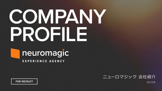 Neuromagic の会社紹介資料です。 HPだけでは伝わりきらない会社の雰囲気を感じていただければと思います。 Neuromagicでは一緒に働く仲間を募集しています。 カジュアル面談も行っていますので、少しでも興味を持っていただけたら お気軽にご連絡ください! Neuromagic HP▼ https://www.neuromagic.com/ recruit▼ https://careers.neuromagic.com/