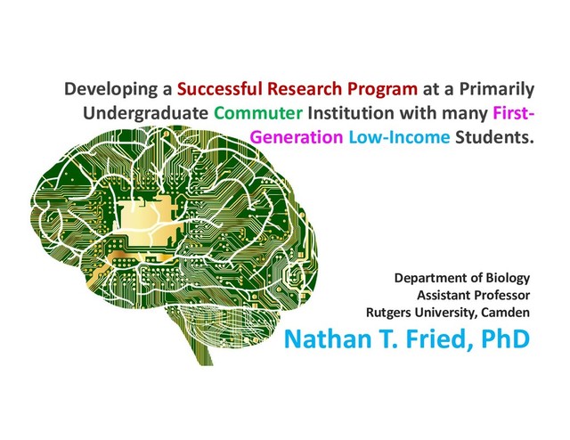 Rutgers University - Camden (RUC) is a Primarily Undergraduate Institution with few graduate programs. Reflecting the RUC urban location, the student body is diverse in traditionally underrepresented groups (16% African-American and 13% Hispanic). The Department of Biology has 350 undergraduates. 54% of students are first-generation (neither parent has attended college). 72% of students work off-campus jobs, suggesting a high rate those from a low-income background. 91% of these students are commuters. However, a healthy number of them (15%) pursue graduate programs after attaining their Bachelor’s in Biology with most pursuing MS degrees. This paints a picture of a large student population from diverse and disadvantaged backgrounds that disproportionately strive to further their education. However, the availability of research opportunities for these students is limited due to smaller numbers of faculty members, a need for off-campus jobs, and limited time from long commutes. To address this, we have developed three research programs that integrate authentic research experiences into the curriculum, allowing students to gain authentic research experiences for credit: 1) Principles and Practices of Biological Research (PPBR, 4-cr completely customizable CURE) 2) Bite-Sized Authentic Research Experiences (B-SARE, 6-cr traditional CURE), and 3) RUC-MARC (2-yr traditional mentored research experience). To showcase our students’ research, we also created an undergraduate research journal that features primary research, reviews, and science news called the RUC Journal of Biological Science. We are actively studying the impact of these initiatives on the science identity, retention, and success of our first-generation low-income students.