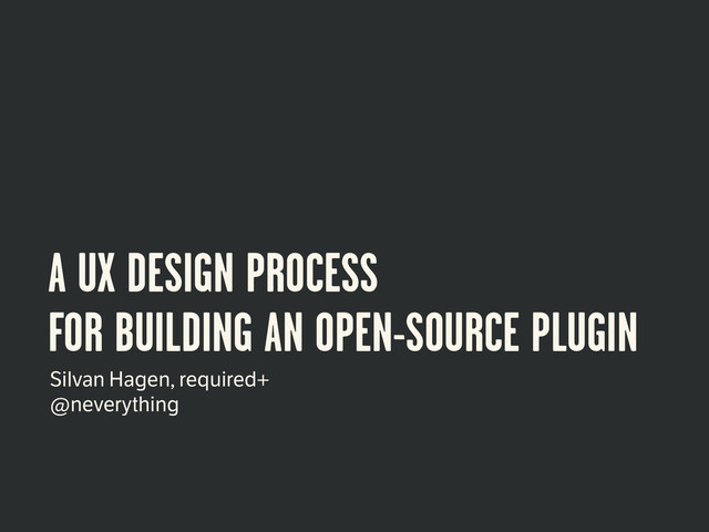 This talk is about bringing the principles of user experience design together with the development team to build a stronger and better solution. I talk about the benefits of user experience design early in the development process and the difficulties we faced implementing the changing user flow into our plugin. Additionally, I show the audience how we used personas, user testing and several use cases based on real life examples using the open-source plugin User Feedback.