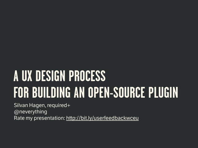 This talk is about bringing the principles of user experience design together with the development team to build a stronger and better solution. I talk about the benefits of user experience design early in the development process and the difficulties we faced implementing the changing user flow into our plugin. Additionally, I show the audience how we used personas, user testing and several use cases based on real life examples using the open-source plugin User Feedback.