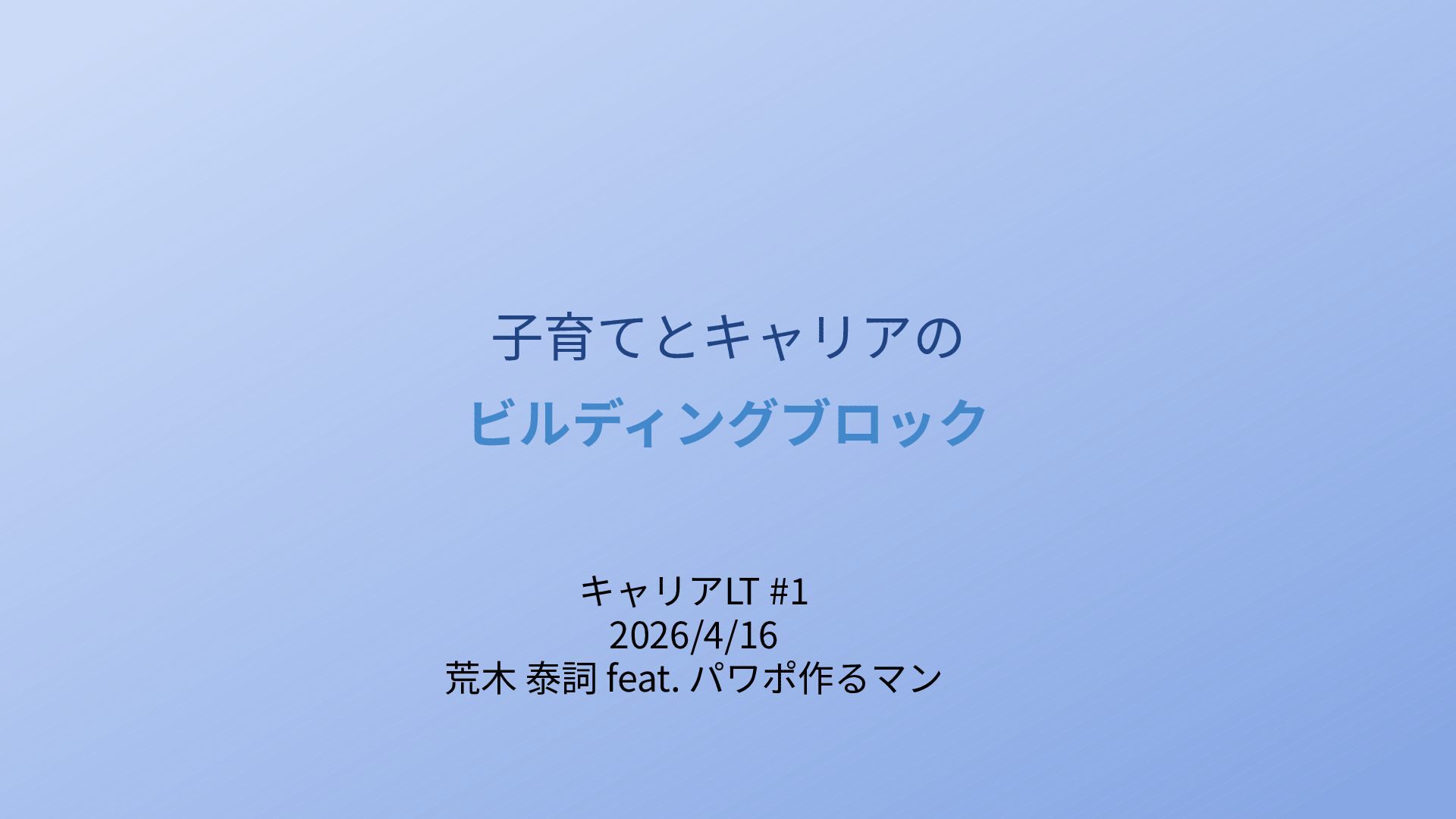 ⼦育てとキャリアの ビルディングブロック キャリアLT #1 2026/4/16 荒⽊ 泰詞 feat. パワポ作るマン