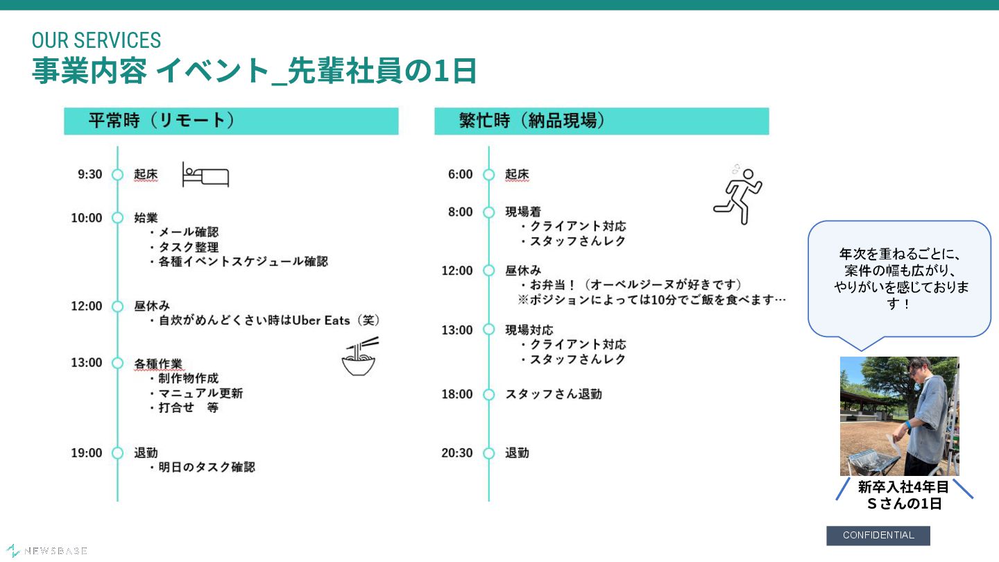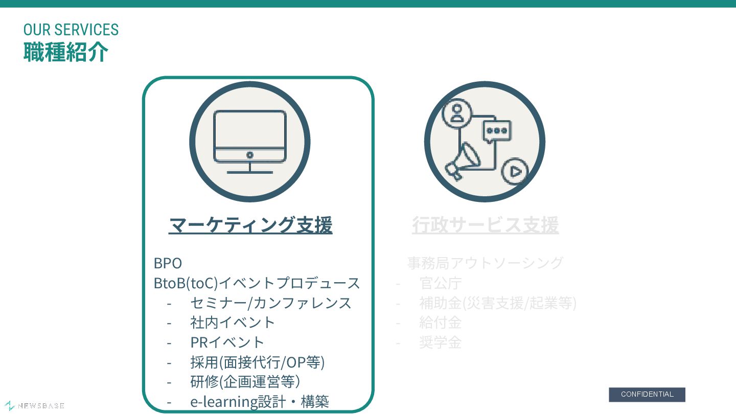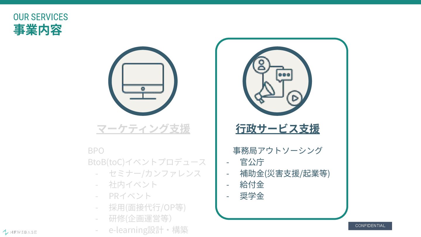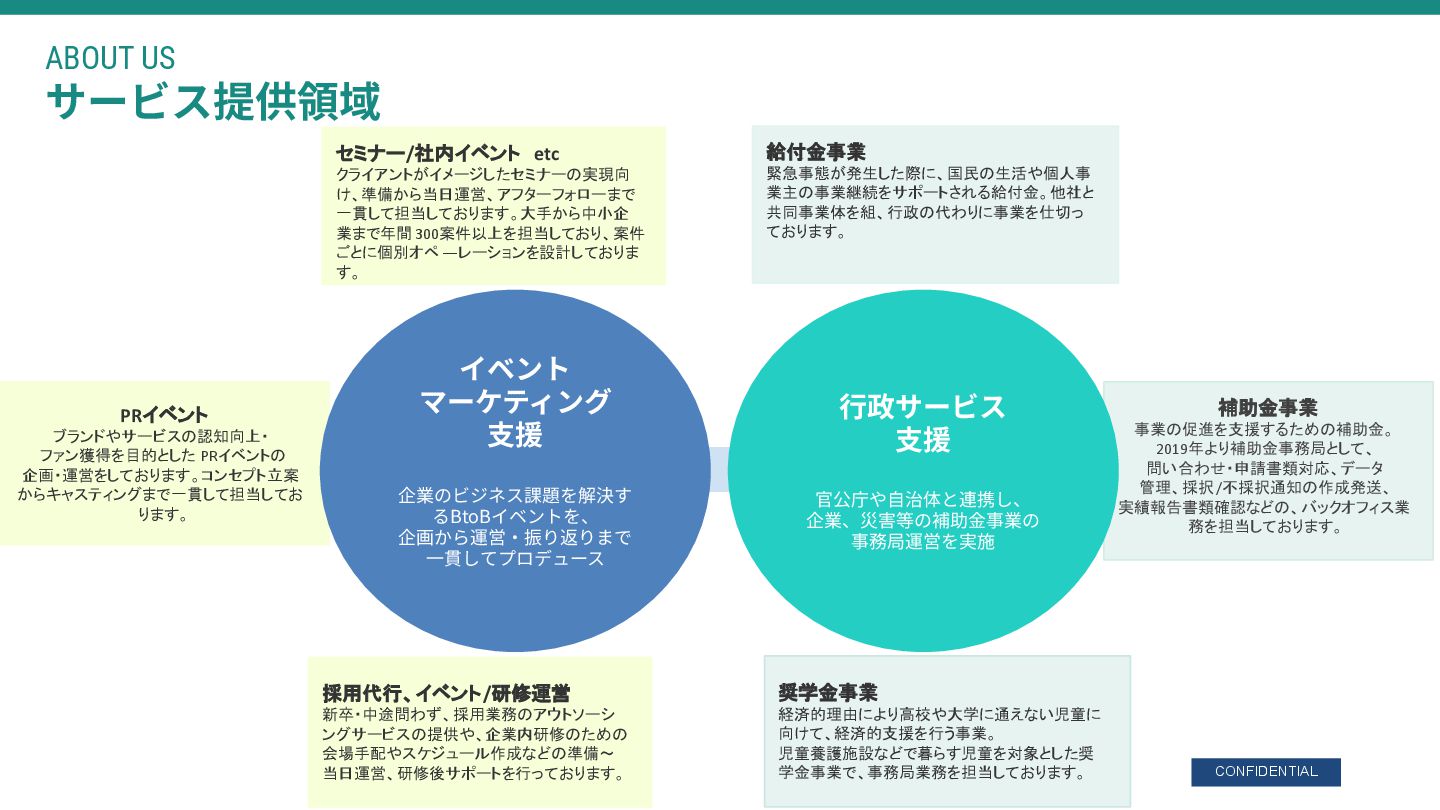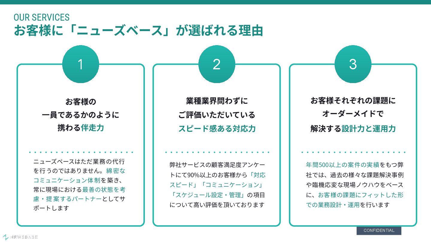 株式会社ニューズベース 1989年3⽉ 〒140-0061 東京都中央区銀座7-16-12 G-7ビルディング9階 〒104-0045 東京都中央区築地5-6-10 浜離宮パークサイドプレイス6階 ⻲井 義勝 104名(2025年6⽉末時点) 沿⾰ 株式会社広真 /株式会社世真 /日商印刷株式会社 /株式会社ワコー /株式会社シュライバー 有限会社TMJapan/こだま印刷株式会社 /株式会社ヴィヴァーチェ /インフォトランス株式会社 株式会社荒川印刷 /株式会社 夢・八天 /綺羅化粧品株式会社 /株式会社サンエムカラー 株式会社HIKE 2010年 グループ経営開始 1989年 ニューズベース設立 イベント事業開始 2020年 コロナ到来 補助金案件受注 2022年 ウィズアス社合併 株式会社HIKE設立 2023年 亀井就任 2025年 広真グループ参画