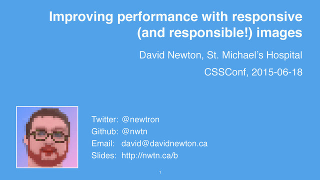 (and responsible!) images CSSConf, 2015-06-18 Twitter: @newtron Github: @nwtn Email: [email protected] Slides: http://nwtn.ca/b