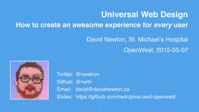 to create an awesome experience for every user OpenWest, 2015-05-07 Twitter: @newtron Github: @nwtn Email: [email protected] Slides: https://github.com/nwtn/pres-uwd-openwest