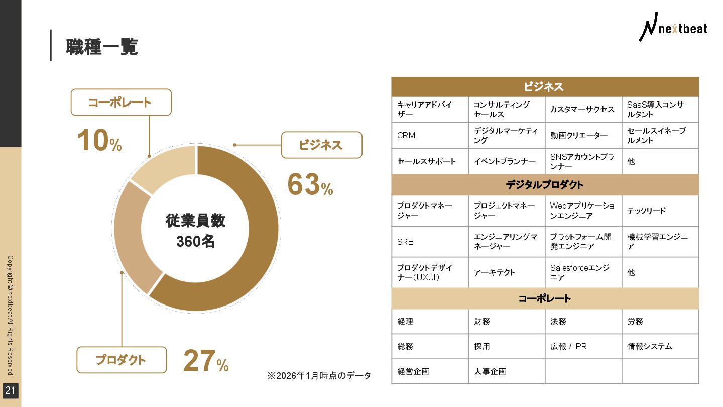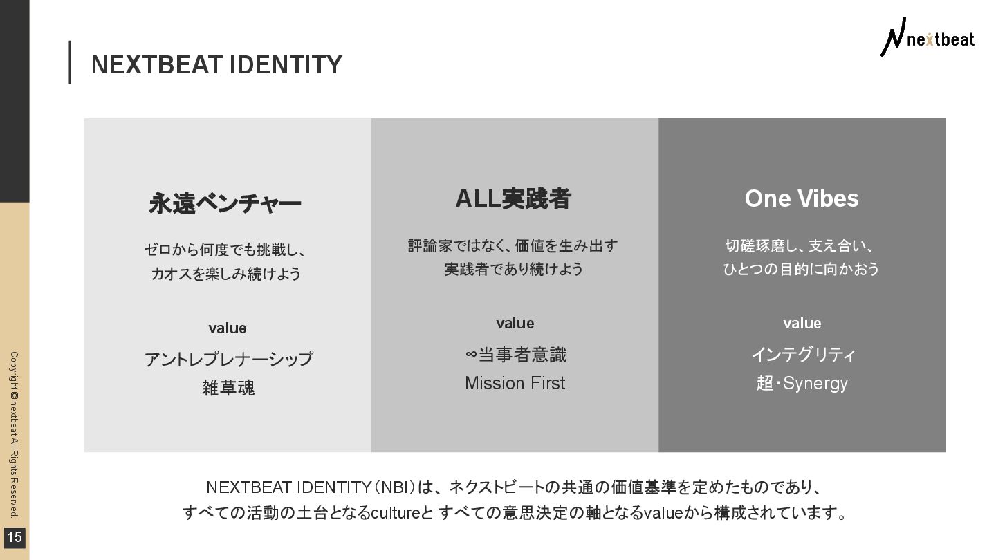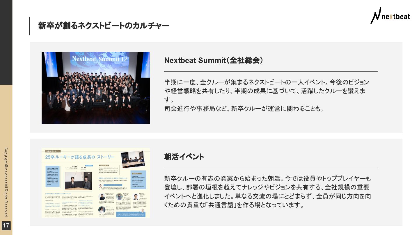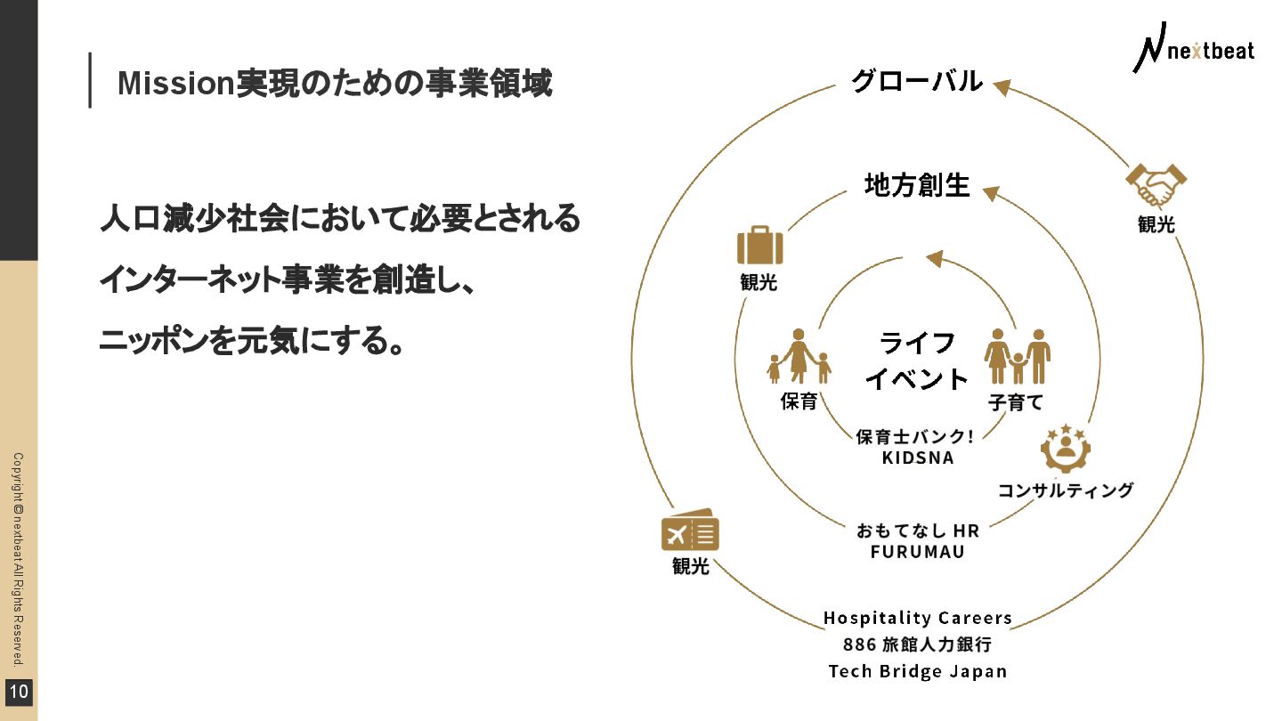 大木 雅志 サンティアゴ・デ・コンポステーラ大学院修 了。大成建設・デロイトトーマツを経て、 2024年4月ネクストビート CSOに就任。 CFO / 今井 浩平 早稲田大学理工学部卒。共同創業後、ア ビームコンサルティングで IT業務改革に 従事。ベンチャー企業の取締役・ CFOとし て約10年経営を牽引。 2025年4月ネクス トビートCFOに就任。 COO / 野田 千有里 大阪大学外国語学部卒。 2019年に新卒で ネクストビートに入社。セールス・人事・マ ネージャーを経験後、 3年で新規事業責任 者に。2024年COO就任。 役員 顧問・専門家 CCO / 澤田 昌久 大阪芸術大学映像学科卒。東北新社で TVCM・Web広告等をプロデュース。 TBSド ラマ脚本も手掛ける。 2020年ネクストビー ト入社、2023年CCO就任。 CPO / 川井 淳矢 徳島大学大学院卒。システム開発企業を 経て、2018年ネクストビートにエンジニアと して入社。KIDSNA関連サービスの開発を 牽引し、2024年CPO就任。 Strategic Advisor / 石毛 陽子 東京大学卒。大和証券、欧州戦略コンサル を経て、2018年ネクストビートにて CSO、 2022年より副社長 COO、2024年より現職。 テクノロジーエヴァンジェリスト / 水島 宏太 筑波大学大学院博士課程修了。 Scalaコ ミュニティに貢献。プログラミング言語・構 文解析に精通。 2023年ネクストビートに技 術顧問として参画、同年テクノロジーエ ヴァンジェリストに就任。 CTO / 溝上 友貴 東京工業大学(現:東京科学大学)情報理 工学院情報工学系卒。 2020年4月ネクスト ビートに新卒入社後、テックリード、プラット フォームエンジニア、 PdMを経て、2025年 10月CTOに就任。 CHRO / 堤 早織 明治学院大学心理学部卒。 SIerでWebエ ンジニア、バックオフィスを経験後、ネクス トビートでエンジニア採用、 EMとして組織 を拡大、採用責任者を経て、 2025年6月 CHRO就任。 CEO / 三原 誠司 早稲田大学卒業。テンプスタッフ株式会社 (現パーソルホールディングス株式会社)、 株式会社エス・エム・エスを経て 2013年10 月ネクストビートを創業。