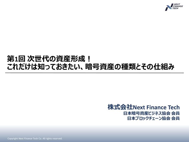 Tech Co. All rights reserved. 第1回 次世代の資産形成! これだけは知っておきたい、暗号資産の種類とその仕組み