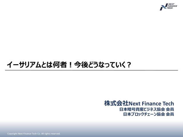 株式会社Next Finance Tech 日本暗号資産ビジネス協会 会員 日本ブロックチェーン協会 会員 Copyright Next Finance