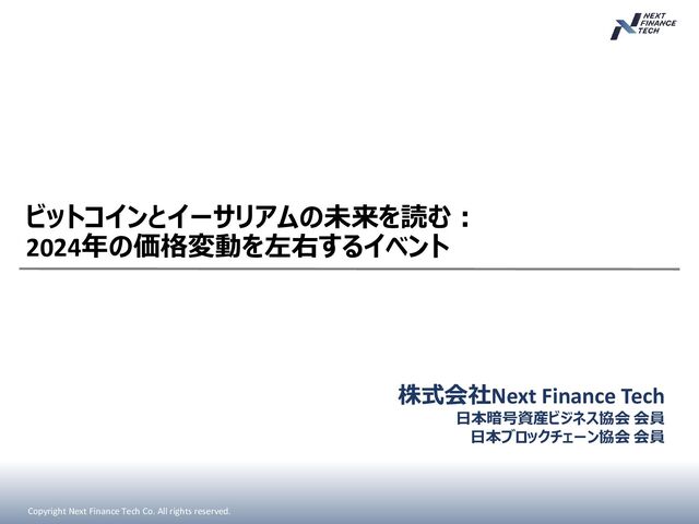 Strictly Confidential リリースされて1か月弱で現物ビットコインETFはBTC時価総額全体の4%程度を占めた 金融的観点 Source:CoinmarketcapよりNext Finance Tech作成 Bitcoin Spot ETF Price Volume 1 Month Average Volume Shares AUM Grayscale (GBTC) $58.75 21,844,400 22,406,482 424.1M $27.68B BlackRock (IBIT) $37.55 71,309,203 55,696,752 416.6M $15.42B Fidelity (FBTC) $57.59 18,122,400 16,855,732 154.3M $9.19B Invesco/Galaxy (BTCO) $65.93 1,023,900 940,591 5.2M $3.69B Ark/21 Shares (ARKB) $65.92 5,531,800 4,023,427 39.8M $2.80B Bitwise (BITB) $35.94 3,981,800 4,215,941 54.2M $2.01B VanEck (HODL) $74.60 500,400 947,695 7.0M $515.80M Valkyrie (BRRR) $18.69 1,115,600 630,273 22.6M $438.80M 約$61B (全体の4%)