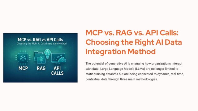 #AIIntegration #DataIntegration #MCPvsRAG #APICalls #NextGenAI