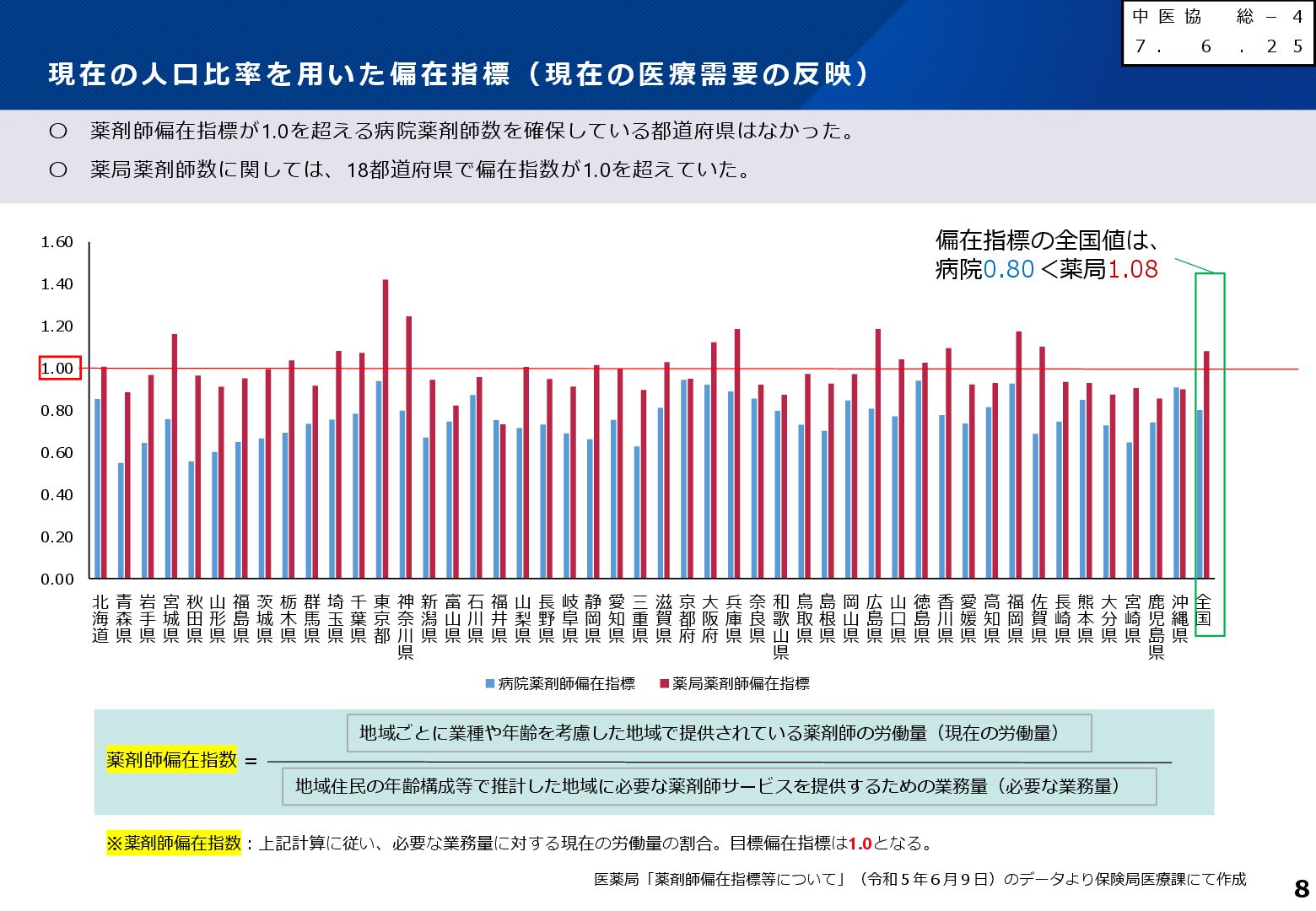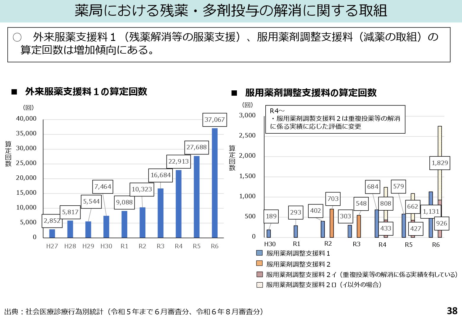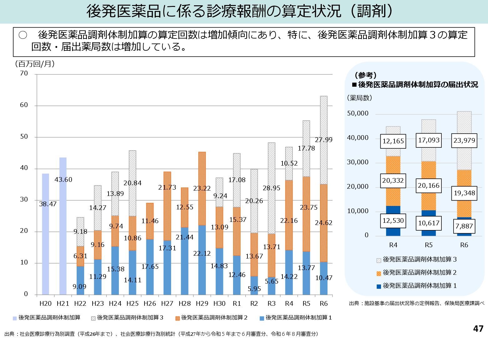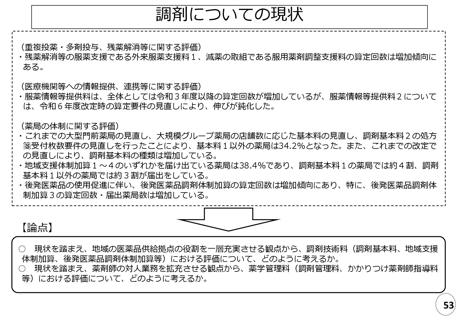 9.4% 9.0% 2.9% 2.8% 2.8% 2.8% 2.8% 2.9% 2.8% 3.0% 2.9% 2.9% 2.9% 3.1% 2,309 2,194 2,137 2,079 2,115 2,174 2,136 2,035 2,017 1,933 1,879 1,839 0 500 1,000 1,500 2,000 2,500 3,000 3,500 0.0% 5.0% 10.0% 15.0% 20.0% 25.0% 30.0% 35.0% R6.8 R6.9 R6.10 R6.11 R6.12 R7.1 R7.2 R7.3 R7.4 R7.5 R7.6 R7.7 限定出荷割合 供給停止割合 限定出荷・供給停止品目数計 11.5% 11.0% 10.7% 10.5% 10.7% 10.8% 10.7% 10.3% 10.3% 9.8% 9.4% 9.0% 9.6% 7.5% 7.8% 8.4% 8.7% 9.0% 9.3% 4.5% 4.2% 4.4% 4.6% 4.9% 3,554 3,066 3,103 3,182 3,244 3,339 3,351 2,360 2,313 2,269 2,230 2,209 0 500 1,000 1,500 2,000 2,500 3,000 3,500 0.0% 5.0% 10.0% 15.0% 20.0% 25.0% 30.0% 35.0% R6.8 R6.9 R6.10 R6.11 R6.12 R7.1 R7.2 R7.3 R7.4 R7.5 R7.6 R7.7 限定出荷割合 供給停止割合 限定出荷・供給停止品目数計 通常出荷 88%, 13,417 品目 限定出荷(自社の事情) 4%, 580 品目 限定出荷(他社品の影響) 4%, 658 品目 限定出荷(その他) 1%, 135 品目 供給停止 3%, 466 品目 通常出荷 86%, 13,787 品目 限定出荷(自社の事情) 4%, 634 品目 限定出荷(他社品の影響) 4%, 662 品目 限定出荷(その他) 1%, 137 品目 供給停止 5%, 776 品目 医 療 用 医 薬 品 の 限 定 出 荷・ 供 給停 止 の状 況 の推 移 (令 和 6年 ~ 7年 度 ) ( 供 給 ( 限 定 出 荷 ・ 供 給停 止 )の 状 況) 薬 価 削 除 予 定 品 目 含 む 薬 価 削 除 予 定 品 目 除 く 医療用医薬品の限定出荷・供給停止の推移 医薬品全体の対応状況(令和7年7月) 医薬品全体の対応状況(令和7年7月) 19.5% 19.8% 14.8% 14.5% 14.2% 14.0% 20.0% 13.8% 21.1% 18.5% 18.5% 19.0% 医療用医薬品の限定出荷・供給停止の推移 14.0% 14.2% 14.2% 13.3% 13.2% 12.7% 12.3% 12.1% 15.1% 14.3% 13.8% 13.6% (割合) (品目数) (割合) (品目数) 49