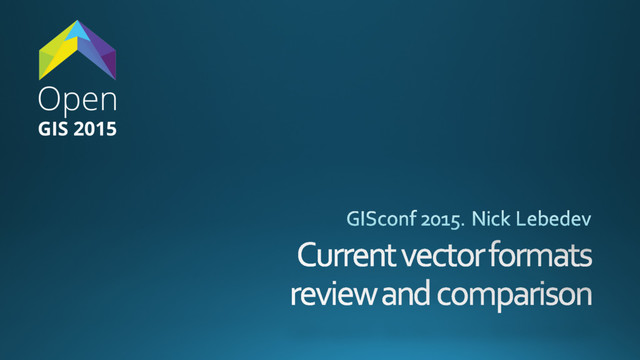 Comparison of different vector formats for geospatial data. Talk given at GISconf 2015 on 21.11.2015 in russian. Video of the talk is here: http://www.youtube.com/watch?v=72KXgjJYn_w