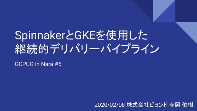 SpinnakerとGKEを使用した 継続的デリバリーパイプライン GCPUG in Nara #5 2020/02/08 株式会社ビヨンド 寺岡 佑樹