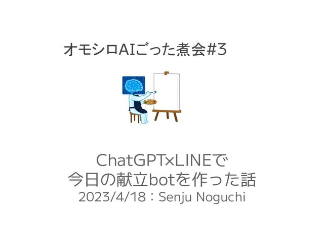 ChatGPT×LINEで 今日の献立botを作った話 2023/4/18:Senju Noguchi オモシロAIごった煮会#3
