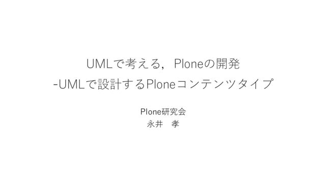 UMLで考える,Ploneの開発 -UMLで設計するPloneコンテンツタイプ Plone研究会 永井 孝