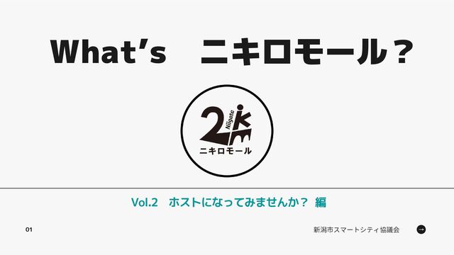 空間を活用してホストが実際にやってみたい 取組のこと。 注)ニキロモールでサポートしたいコンテンツは、『街なかに賑わ いをもたらす、公益性を備えた取り組み』と考えています。 <ニキロモールのホストになるメリットは?> ホストのプロフィールを 公開します! コンテンツ(こだわり・思い)を 公開します! 提案したコンテンツを 実施できます ※企画提案いただいたコンテンツ全ての実施をお約束するものではありません。内容を確認させていただ き、空間所有者と協議した上で、実施の可否や日時を相談調整させていただきます。 ① ② ③ ※ 〇空間の使用料や手 続きは不要 〇実施費用の一部を 事務局が補助 試行実施