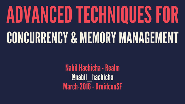 based on the experience of building Realm, We'll dig into some patterns & tricks used to control memory footprint & multithreading.